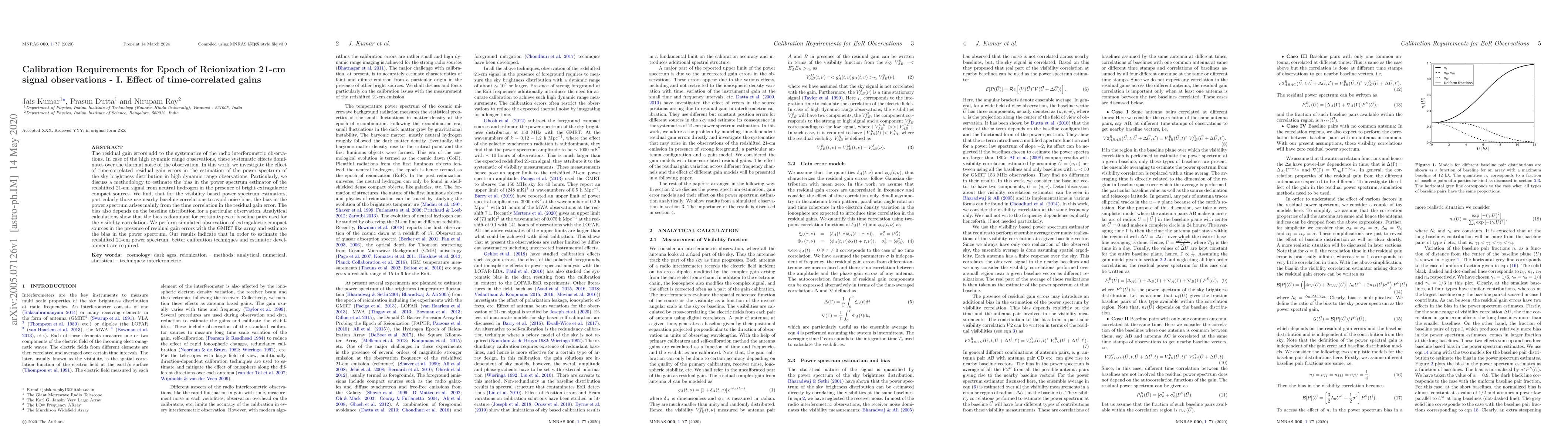 This paper investigates the impact of time-correlated residual gain errors on the estimation of the 21-cm signal power spectrum during Epoch of Reionization observations, finding that these errors introduce significant bias in visibility-based estimators. Better calibration techniques and improved estimator development are recommended to mitigate this bias.