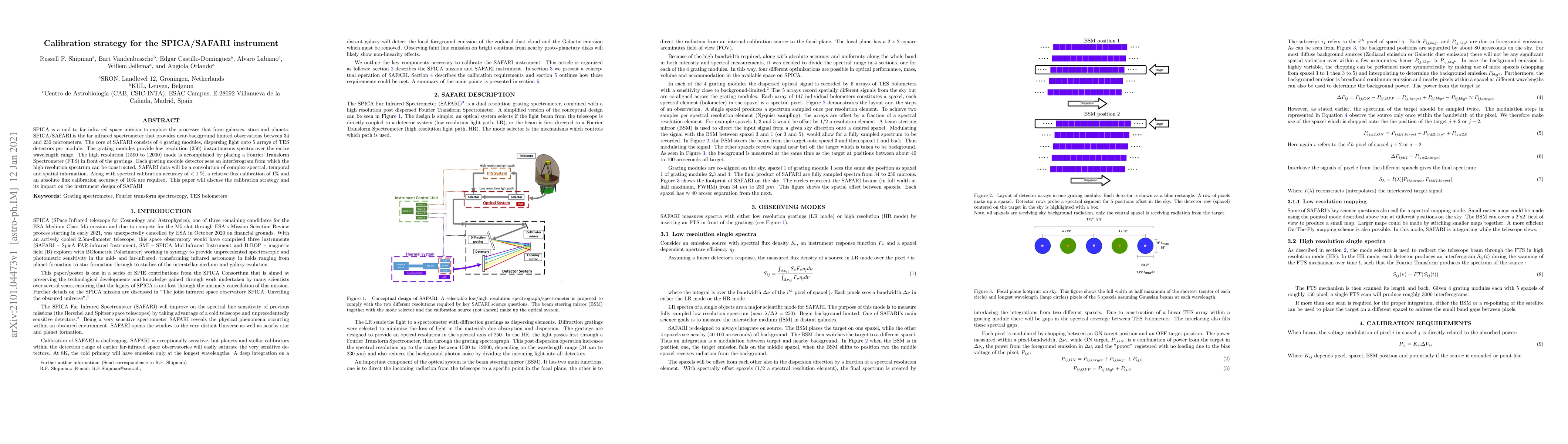 The SPICA/SAFARI instrument requires a calibration strategy to achieve accurate spectral, temporal, and spatial information. The goal is to calibrate the instrument for <1% spectral accuracy, 1% relative flux calibration, and 10% absolute flux calibration.