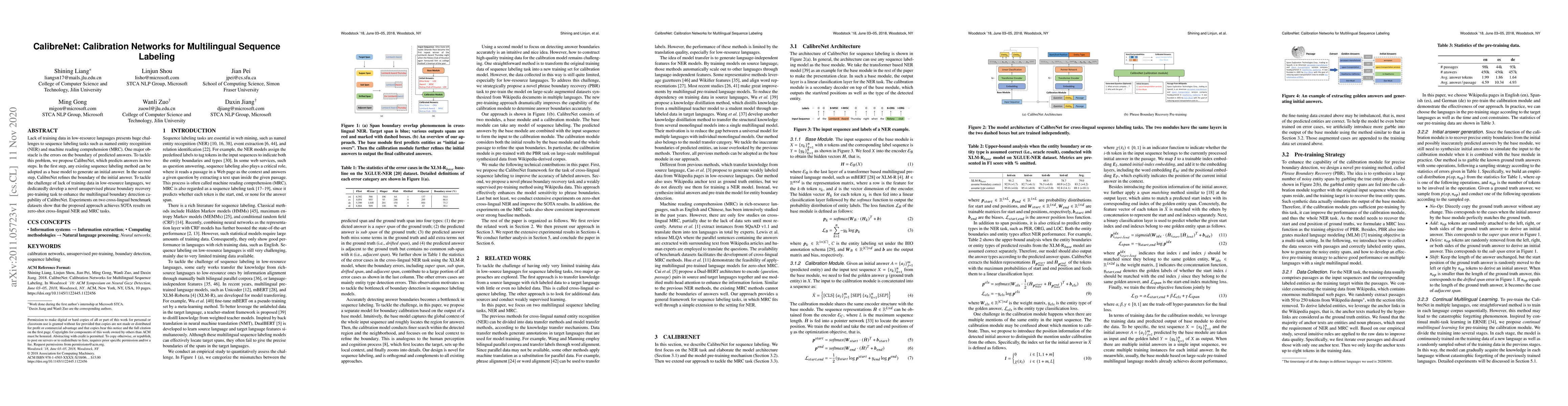 CalibreNet addresses the challenge of low-resource language sequence labeling by refining predicted answer boundaries through a two-step process, achieving state-of-the-art results in zero-shot cross-lingual named entity recognition and machine reading comprehension. It employs an unsupervised phrase boundary recovery pre-training method to enhance multilingual boundary detection.