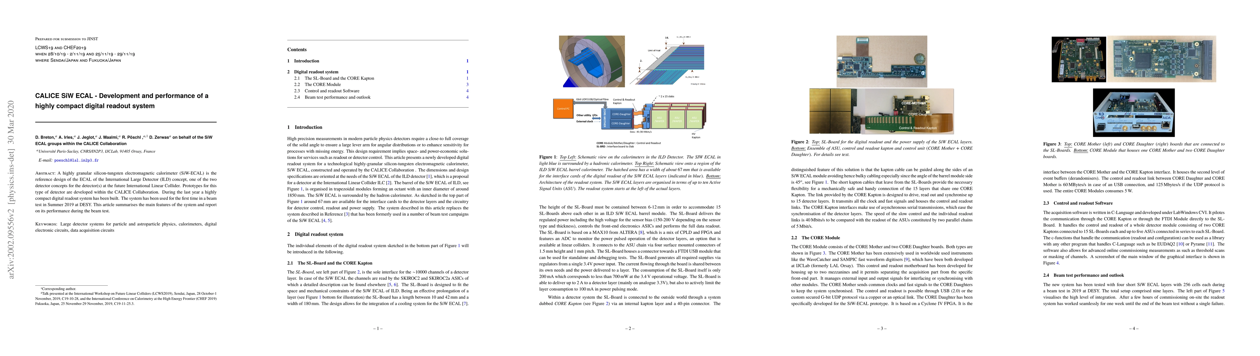 The CALICE SiW-ECAL project developed a highly granular silicon-tungsten electromagnetic calorimeter for the ILD detector concept, and built a compact digital readout system that was tested in Summer 2019 at DESY, demonstrating successful performance.