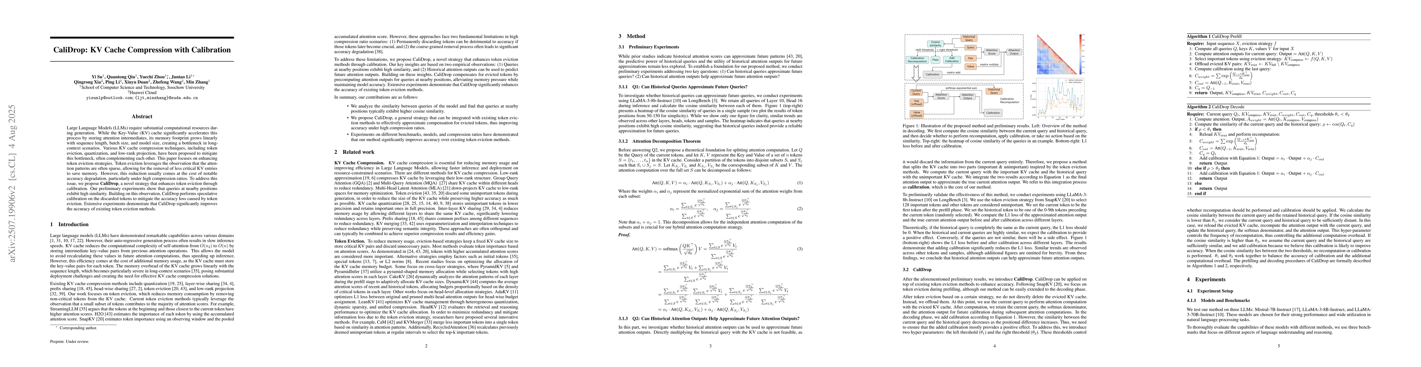 Large Language Models (LLMs) require substantial computational resources during generation. While the Key-Value (KV) cache significantly accelerates this process by storing attention intermediates, its memory footprint grows linearly with sequence length, batch size, and model size, creating a bottleneck in long-context scenarios. Various KV cache compression techniques, including token eviction, quantization, and low-rank projection, have been proposed to mitigate this bottleneck, often complementing each other. This paper focuses on enhancing token eviction strategies. Token eviction leverages the observation that the attention patterns are often sparse, allowing for the removal of less critical KV entries to save memory. However, this reduction usually comes at the cost of notable accuracy degradation, particularly under high compression ratios. To address this issue, we propose \textbf{CaliDrop}, a novel strategy that enhances token eviction through calibration. Our preliminary experiments show that queries at nearby positions exhibit high similarity. Building on this observation, CaliDrop performs speculative calibration on the discarded tokens to mitigate the accuracy loss caused by token eviction. Extensive experiments demonstrate that CaliDrop significantly improves the accuracy of existing token eviction methods.