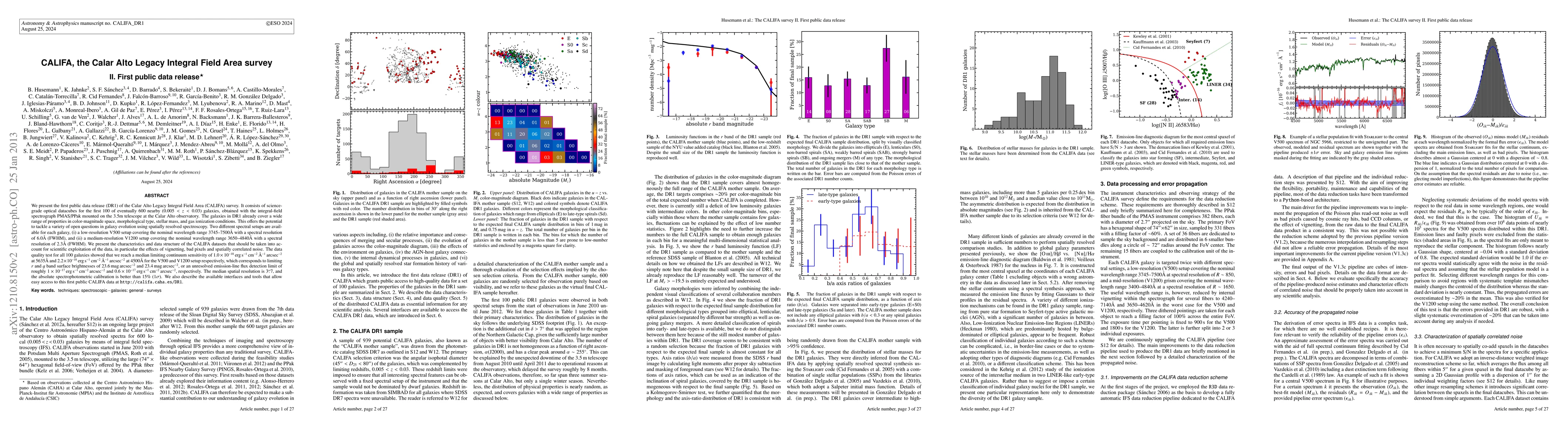The CALIFA survey's first public data release includes science-grade optical datacubes for 100 nearby galaxies, offering detailed spatially resolved spectroscopy to explore galaxy evolution. The data comprises two spectral setups with varying resolutions and covers a broad range of galaxy properties.