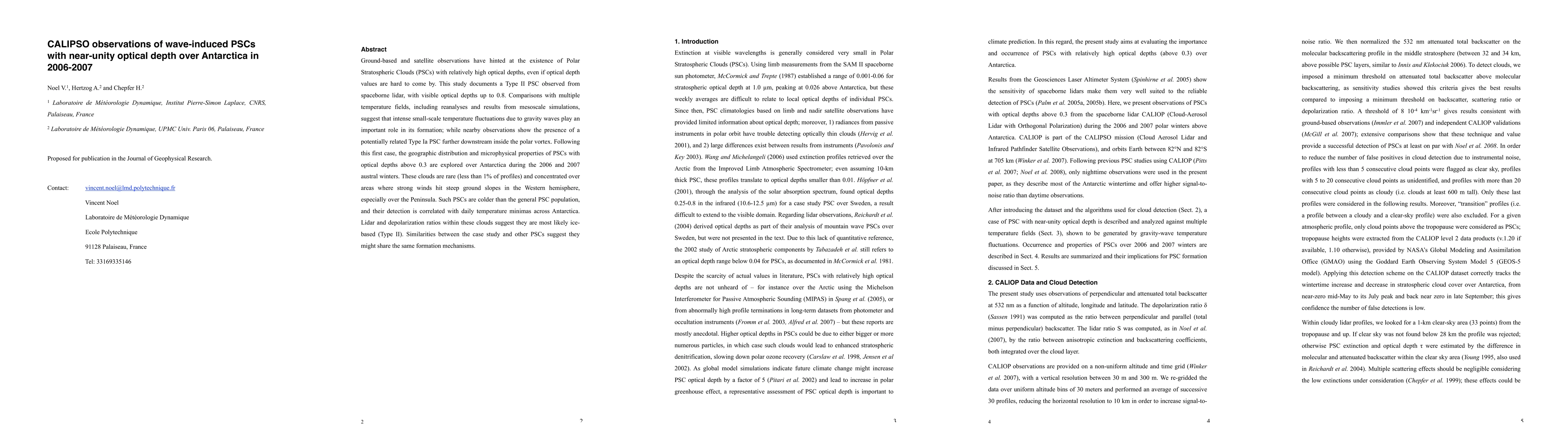 Ground-based and satellite observations have hinted at the existence of polar stratospheric clouds (PSCs) with relatively high optical depths, even if optical depth values are hard to come by. This study documents a type II PSC observed from spaceborne lidar, with visible optical depths up to 0.8. Comparisons with multiple temperature fields, including reanalyses and results from mesoscale simulations, suggest that intense small-scale temperature fluctuations due to gravity waves play an important role in its formation, while nearby observations show the presence of a potentially related type Ia PSC farther downstream inside the polar vortex. Following this first case, the geographic distribution and microphysical properties of PSCs with optical depths above 0.3 are explored over Antarctica during the 2006 and 2007 austral winters. These clouds are rare (less than 1% of profiles) and concentrated over areas where strong winds hit steep ground slopes in the Western Hemisphere, especially over the peninsula. Such PSCs are colder than the general PSC population, and their detection is correlated with daily temperature minima across Antarctica. Lidar and depolarization ratios within these clouds suggest they are most likely ice-based (type II). Similarities between the case study and other PSCs suggest they might share the same formation mechanisms.
