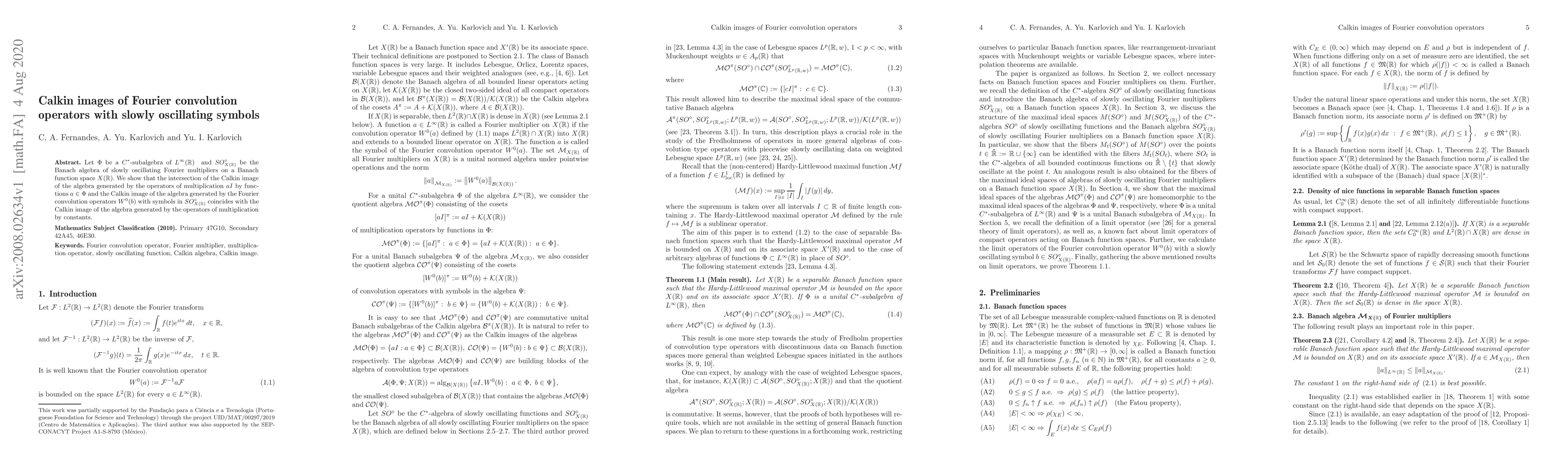 The study explores the intersection of two Calkin images, one from convolution operators with slowly oscillating symbols and the other from multiplication operators by functions in a $C^*$-subalgebra, showing they coincide with the Calkin image of multiplication operators by constants.