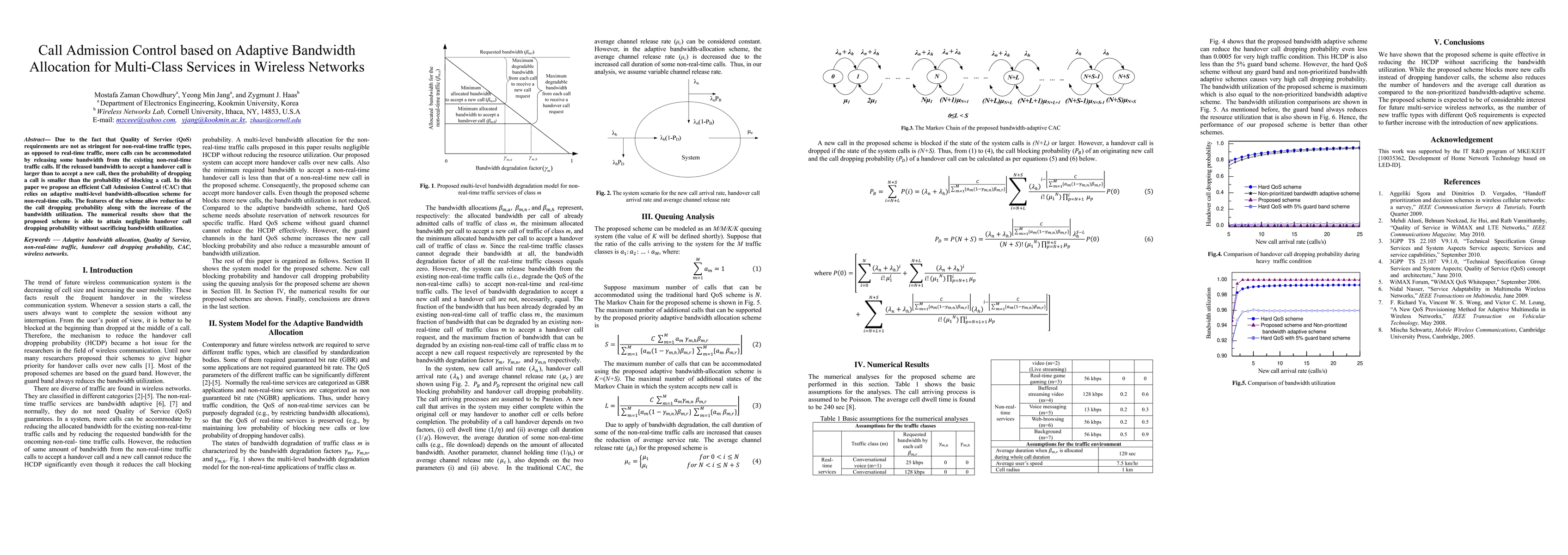 This paper proposes an adaptive Call Admission Control (CAC) scheme for wireless networks that dynamically allocates bandwidth to non-real-time services, thereby reducing call dropping probability and improving bandwidth utilization. The scheme prioritizes reallocating bandwidth from less stringent non-real-time traffic to accommodate new calls, achieving negligible handover call dropping.