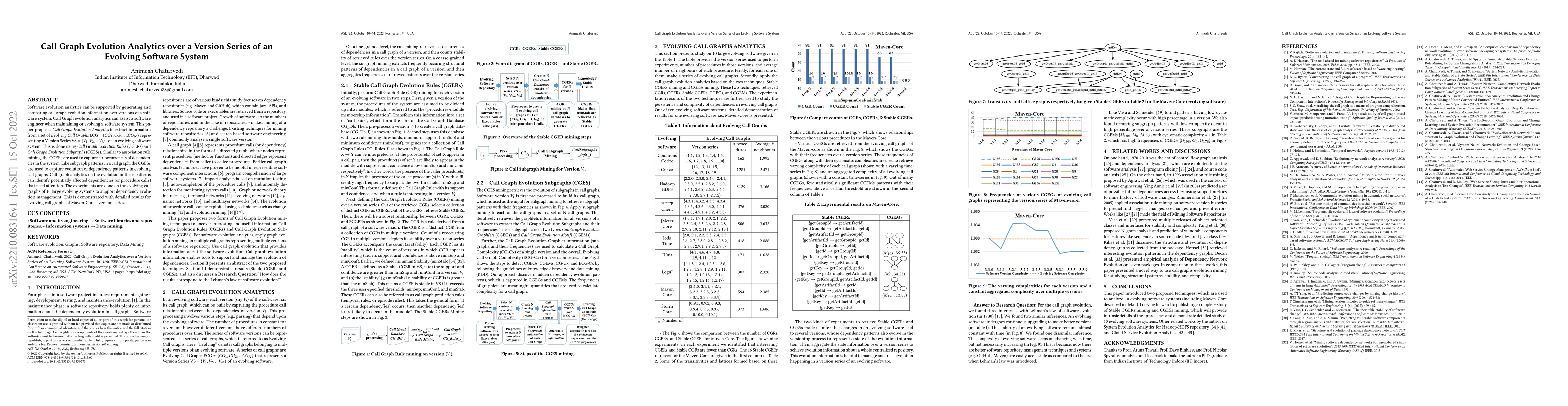 Call Graph evolution analytics can aid a software engineer when maintaining or evolving a software system. This paper proposes Call Graph Evolution Analytics to extract information from an evolving call graph ECG = CG_1, CG_2,... CG_N for their version series VS = V_1, V_2, ... V_N of an evolving software system. This is done using Call Graph Evolution Rules (CGERs) and Call Graph Evolution Subgraphs (CGESs). Similar to association rule mining, the CGERs are used to capture co-occurrences of dependencies in the system. Like subgraph patterns in a call graph, the CGESs are used to capture evolution of dependency patterns in evolving call graphs. Call graph analytics on the evolution in these patterns can identify potentially affected dependencies (or procedure calls) that need attention. The experiments are done on the evolving call graphs of 10 large evolving systems to support dependency evolution management. We also consider results from a detailed study for evolving call graphs of Maven-Core's version series.
