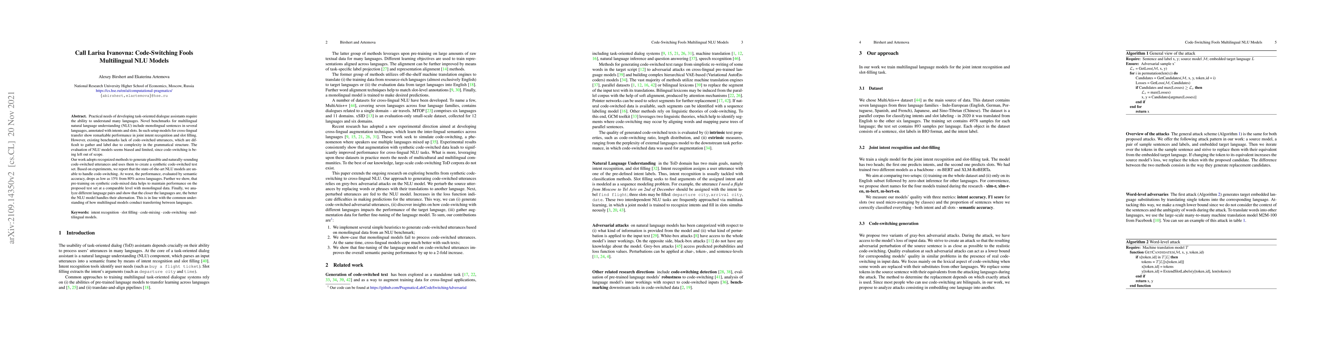 This study investigates the performance of state-of-the-art multilingual natural language understanding (NLU) models on code-switched utterances, revealing significant drops in accuracy. Pre-training on synthetic code-mixed data improves model performance, with better results observed for closely related language pairs.