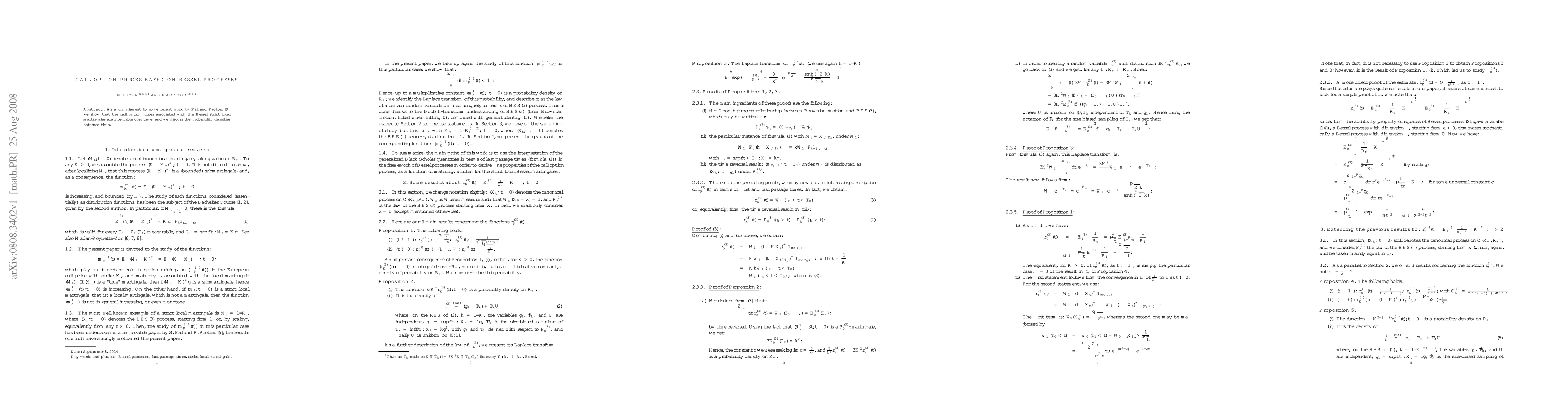 The paper analyzes call option prices using Bessel processes, extending previous work by Pal and Protter.