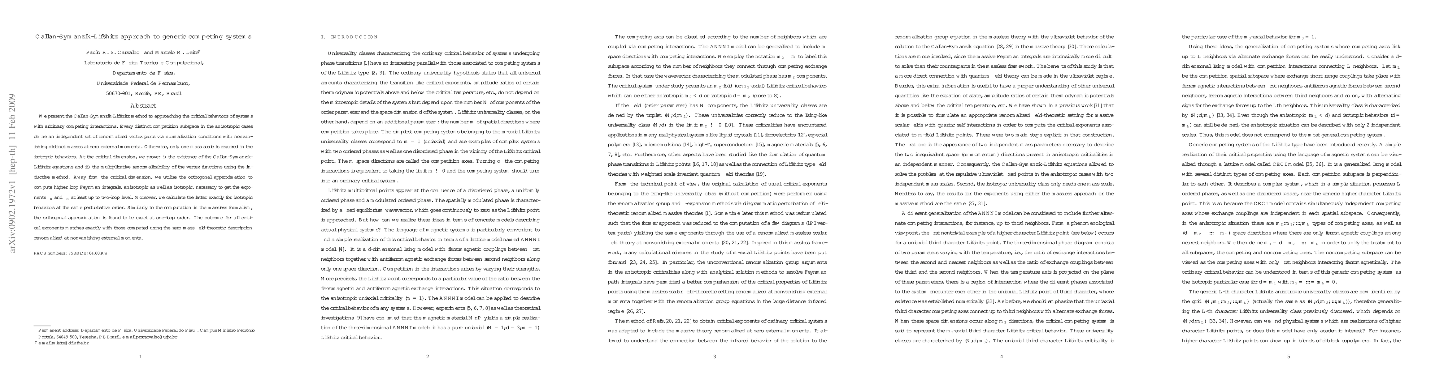 This paper applies the Callan-Symanzik-Lifshitz method to study critical behaviors in systems with competing interactions, proving the existence of the Callan-Symanzik-Lifshitz equations and multiplicative renormalizability at the critical dimension. It computes critical exponents $\eta_{n}$ and $\nu_{n}$ using the orthogonal approximation, with exact results for isotropic behaviors at two-loop order.