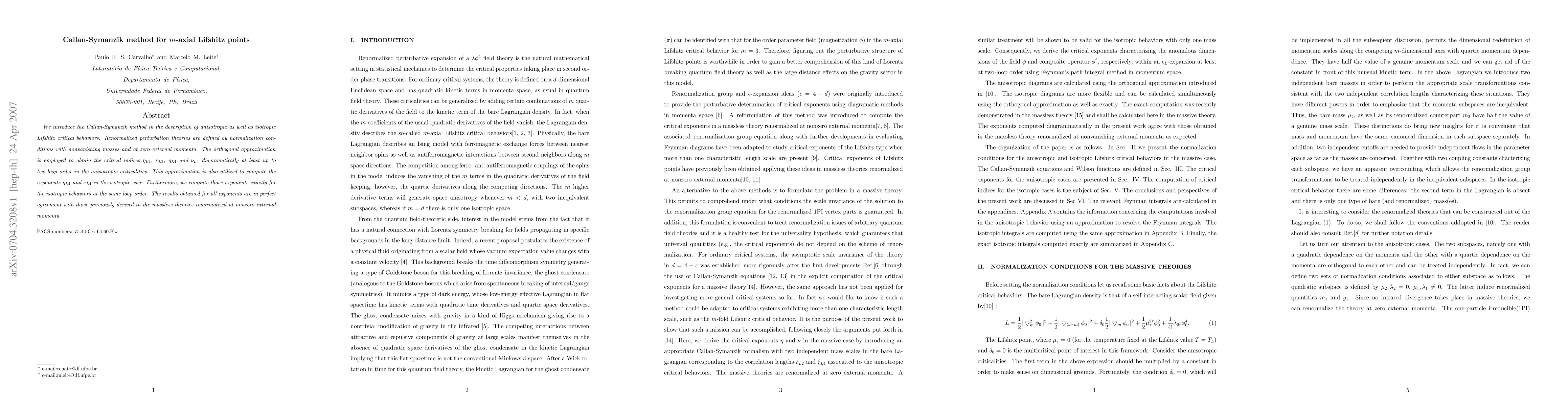 This paper applies the Callan-Symanzik method to study anisotropic and isotropic Lifshitz critical behaviors, defining renormalized perturbation theories with nonvanishing masses and zero external momenta. The orthogonal approximation is used to compute critical indices up to two-loop order, showing agreement with previous results from massless theories.