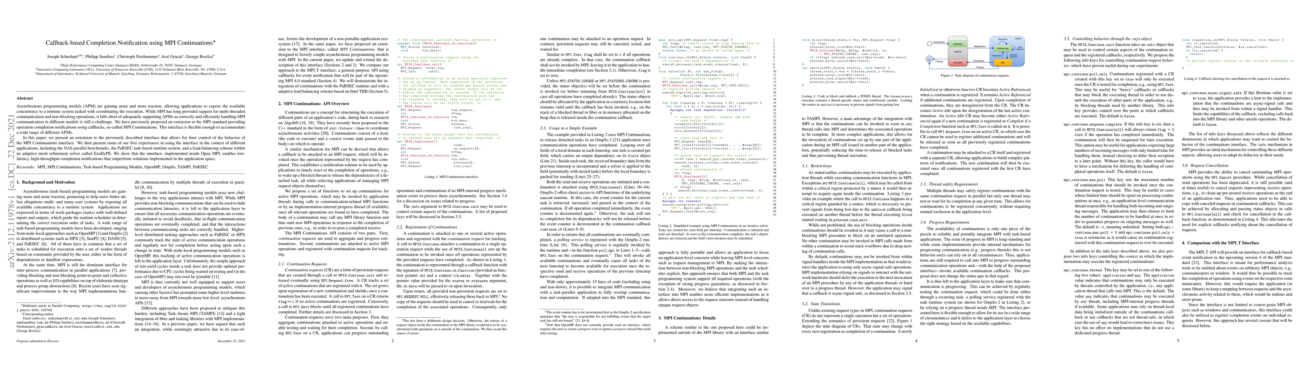 This paper extends the MPI Continuations interface to provide finer control over asynchronous MPI communication, enabling low-latency, high-throughput completion notifications. The implementation within Open MPI demonstrates superior performance compared to application-level solutions, as tested with various applications including NAS parallel benchmarks and ExaHyPE.