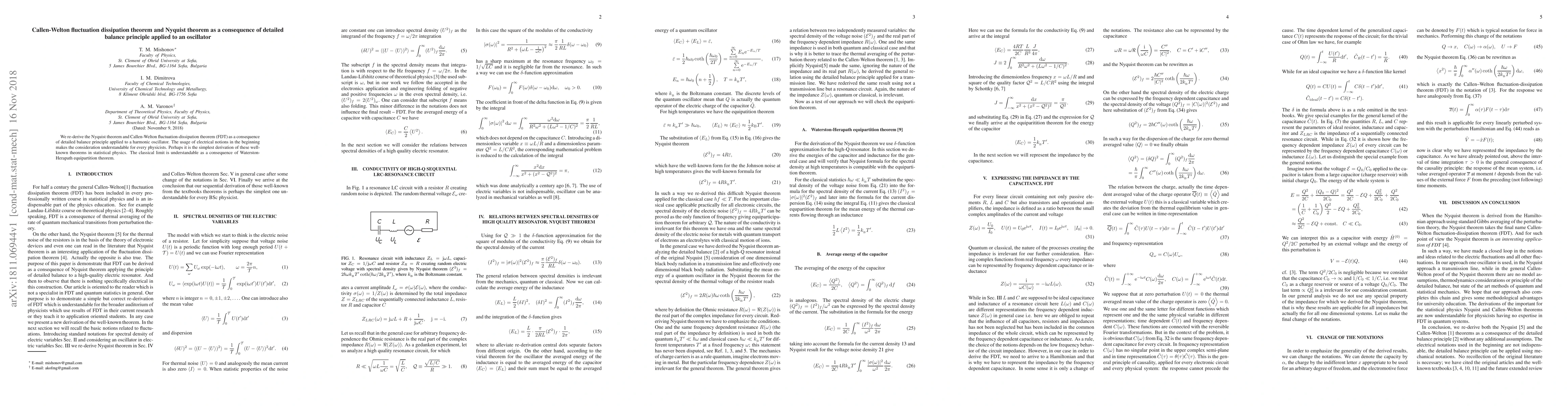 This paper re-derives the Nyquist theorem and the Callen-Welton fluctuation-dissipation theorem using the detailed balance principle applied to a harmonic oscillator, providing a straightforward derivation accessible to physicists through electrical analogies. The classical limit is explained via the Waterston-Herapath equipartition theorem.