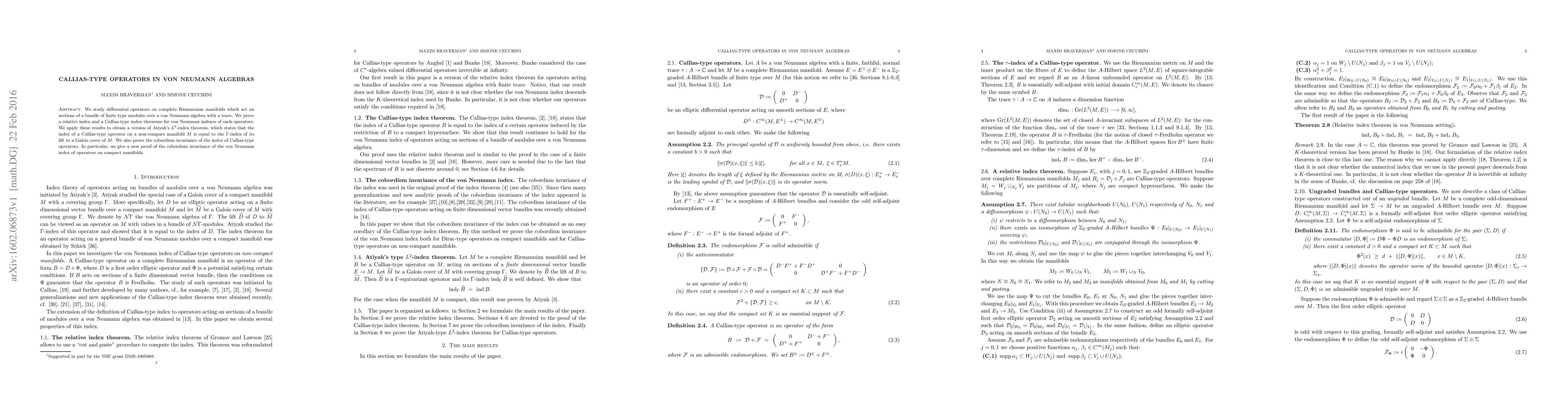 This paper develops Callias-type index theorems for differential operators on Riemannian manifolds, establishing relative and Callias-type index theorems within von Neumann algebras. It provides a version of Atiyah's $L^2$-index theorem for non-compact manifolds and proves the cobordism invariance of the index of Callias-type operators.