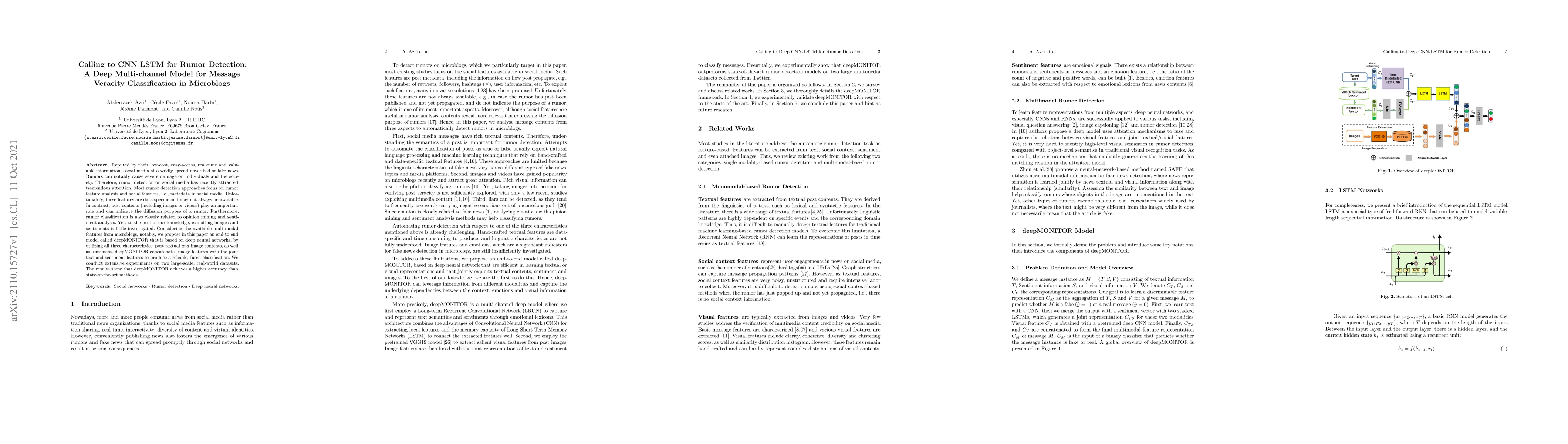 This research introduces deepMONITOR, a deep learning model leveraging CNN-LSTM for rumor detection in microblogs by integrating textual, image, and sentiment features. The proposed model demonstrates superior accuracy in automated rumor verification compared to existing methods, highlighting the importance of multimodal data in rumor detection.