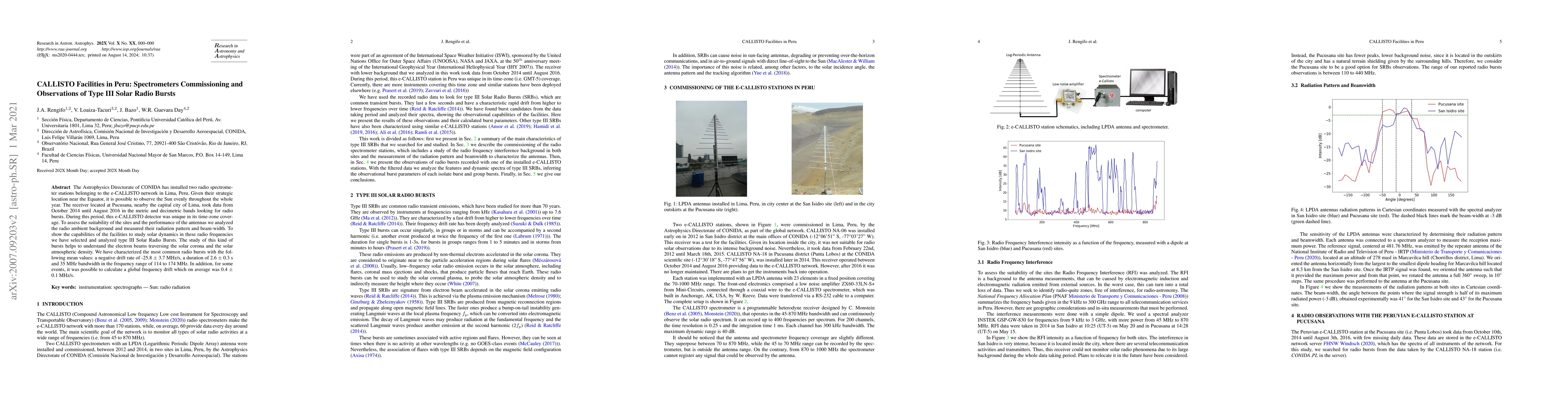 The e-CALLISTO network in Peru installed two radio spectrometer stations to study solar dynamics, focusing on type III solar radio bursts. The analysis revealed mean values for these bursts, including a negative drift rate, duration, and bandwidth, demonstrating the facilities' capability to observe solar phenomena.