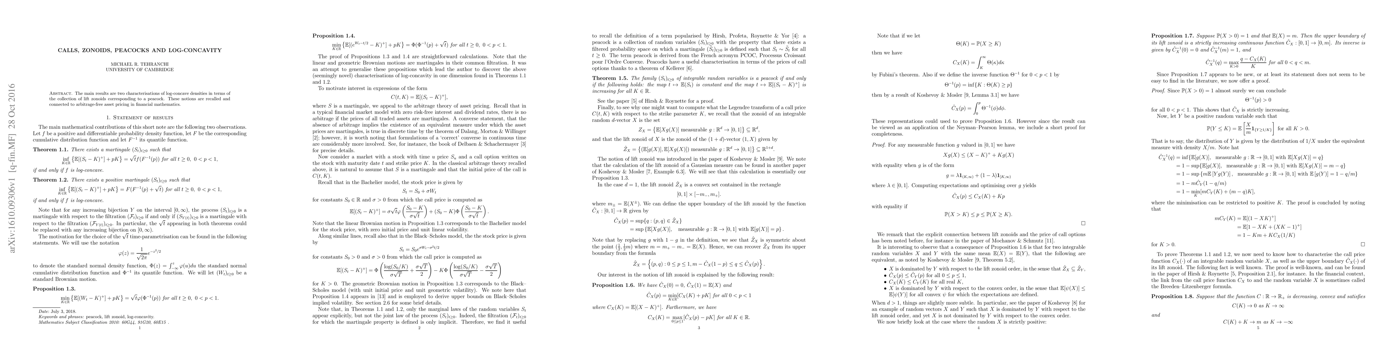 The main results are two characterisations of log-concave densities in terms of the collection of lift zonoids corresponding to a peacock. These notions are recalled and connected to arbitrage-free asset pricing in financial mathematics.