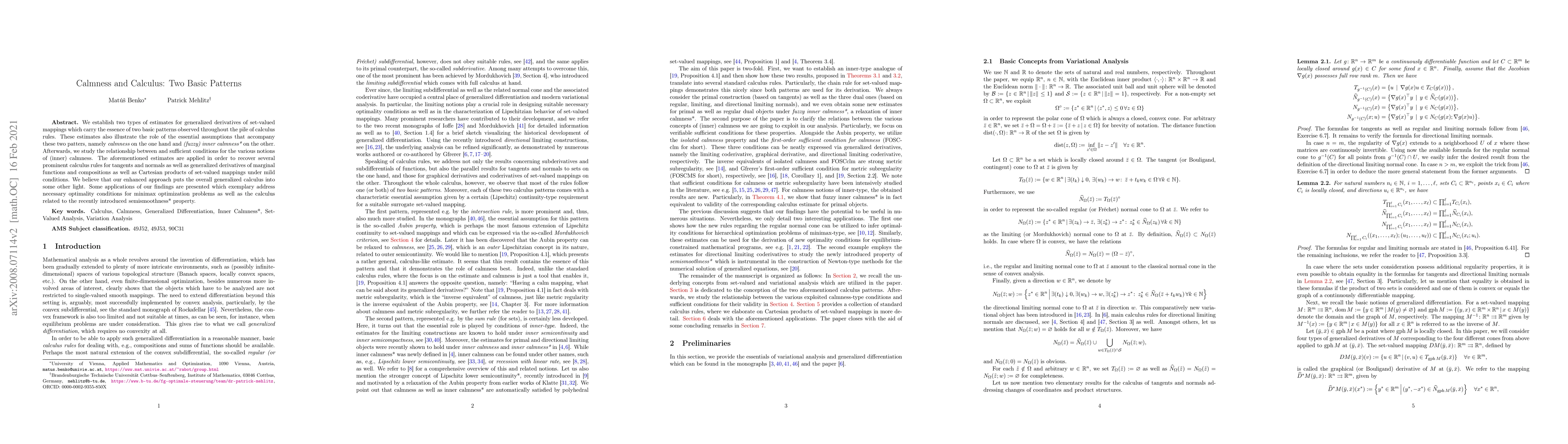 We establish two types of estimates for generalized derivatives of set-valued mappings which carry the essence of two basic patterns observed troughout the pile of calculus rules. These estimates also illustrate the role of the essential assumptions that accompany these two patters, namely calmness on the one hand and (fuzzy) inner calmness* on the other. Afterwards, we study the relationship between and sufficient conditions for the various notions of (inner) calmness. The aforementioned estimates are applied in order to recover several prominent calculus rules for tangents and normals as well as generalized derivatives of marginal functions and compositions as well as Cartesian products of set-valued mappings under mild conditions. We believe that our enhanced approach puts the overall generalized calculus into some other light. Some applications of our findings are presented which exemplary address necessary optimality conditions for minimax optimization problems as well as the calculus related to the recently introduced semismoothness* property.