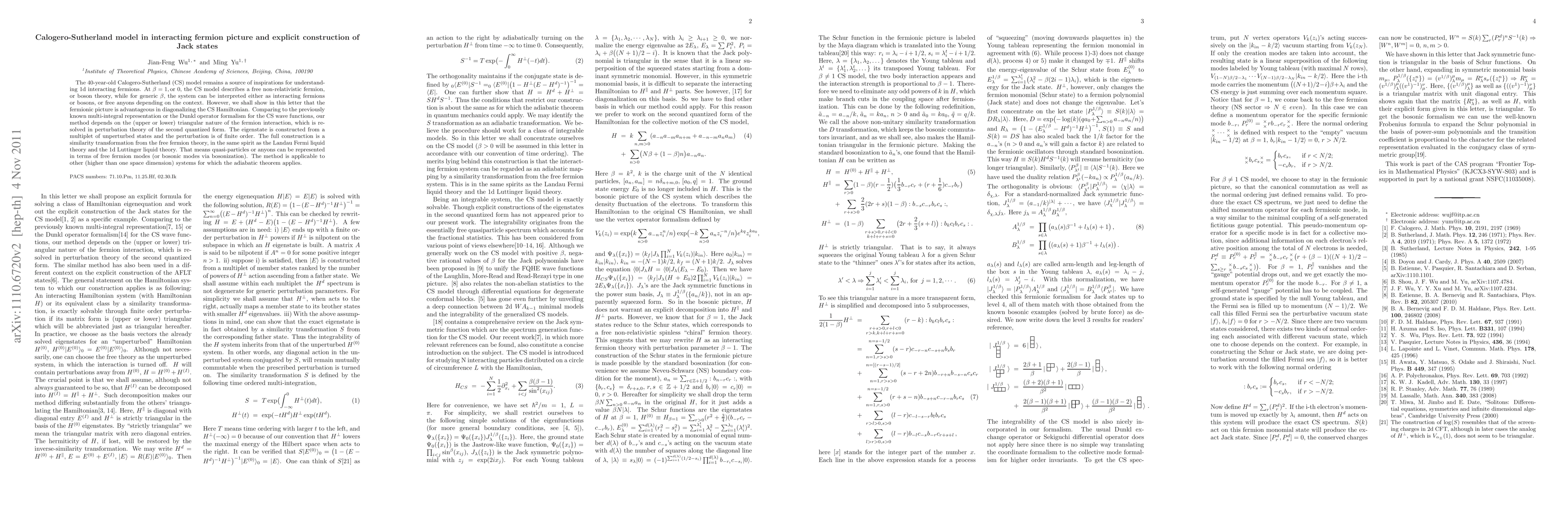 The 40-year-old Calogero-Sutherland (CS) model remains a source of inspirations for understanding 1d interacting fermions. At $\beta=1, \text{or}0$, the CS model describes a free non-relativistic fermion, or boson theory, while for generic $\beta$, the system can be interpreted either as interacting fermions or bosons, or free anyons depending on the context. However, we shall show in this letter that the fermionic picture is advantageous in diagonalizing the CS Hamiltonian. Comparing to the previously known multi-integral representation or the Dunkl operator formalism for the CS wave functions, our method depends on the (upper or lower) triangular nature of the fermion interaction, which is resolved in perturbation theory of the second quantized form. The eigenstate is constructed from a multiplet of unperturbed states and the perturbation is of finite order. The full construction is a similarity transformation from the free fermion theory, in the same spirit as the Landau Fermi liquid theory and the 1d Luttinger liquid theory. That means quasi-particles or anyons can be represented in terms of free fermion modes (or bosonic modes via bosonization). The method is applicable to other (higher than one space dimension) systems for which the adiabatic theorem applies.