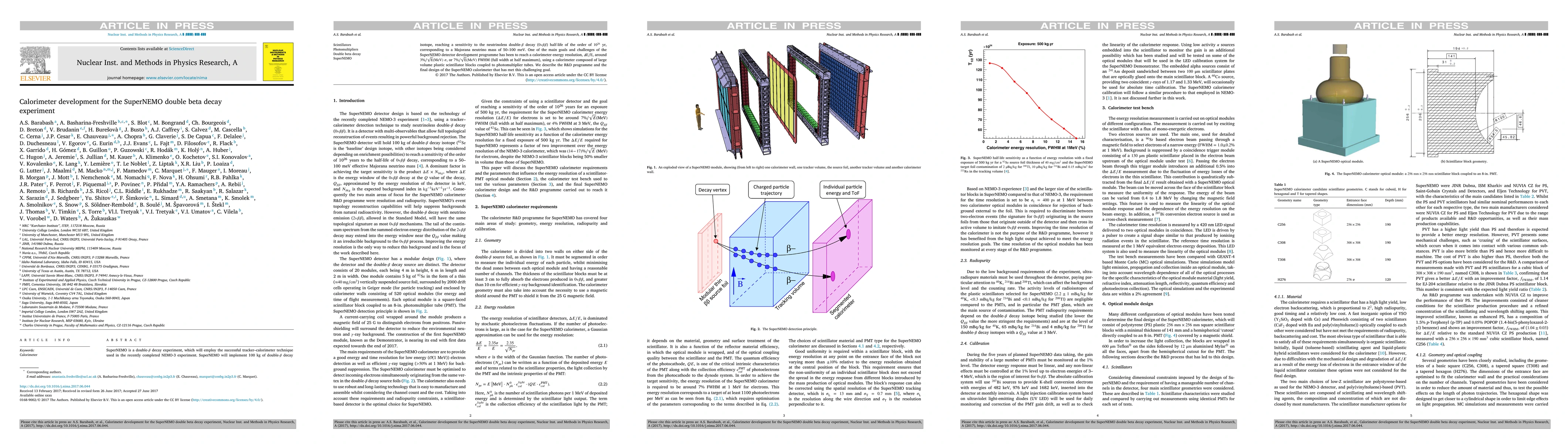 The SuperNEMO experiment aims to detect neutrinoless double-$\beta$ decay using a tracker-calorimeter technique, achieving a sensitivity of $10^{26}$ yr for the decay half-life. The development of its calorimeter, composed of large plastic scintillator blocks, successfully met the goal of an energy resolution of 3%/$\sqrt{E}$ (MeV) $\sigma$.