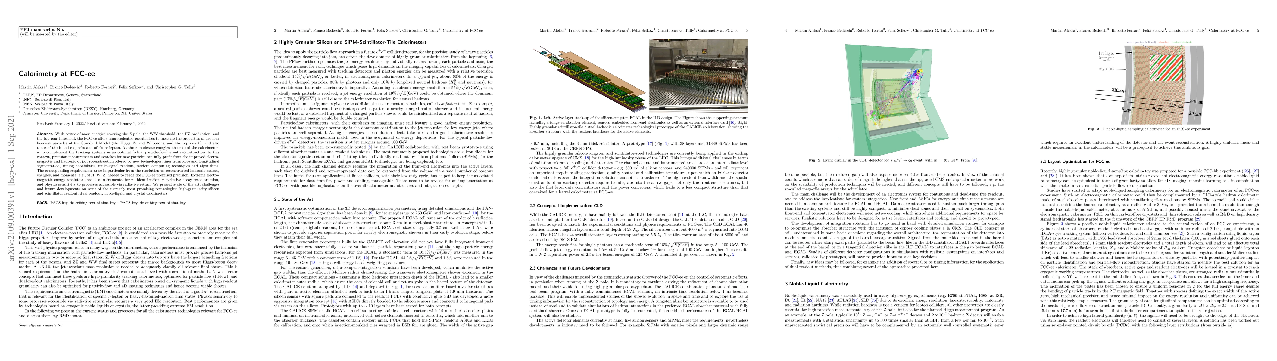 The paper discusses various calorimetry technologies for the FCC-ee experiment, focusing on high-granularity silicon and scintillator readout, dual readout, noble-liquid, and crystal calorimeters.