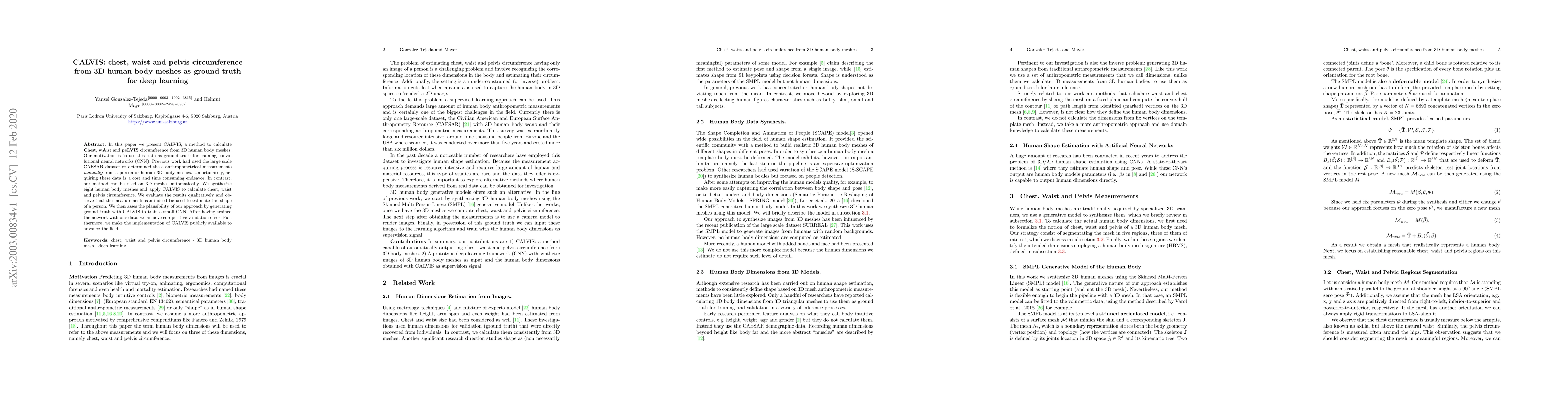 This paper introduces CALVIS, a method for automatically calculating chest, waist, and pelvis circumferences from 3D human body meshes, aiming to provide ground truth data for training convolutional neural networks. The authors demonstrate the effectiveness of their approach by generating synthetic data and achieving competitive validation error in a small CNN, making the implementation publicly available to advance the field.
