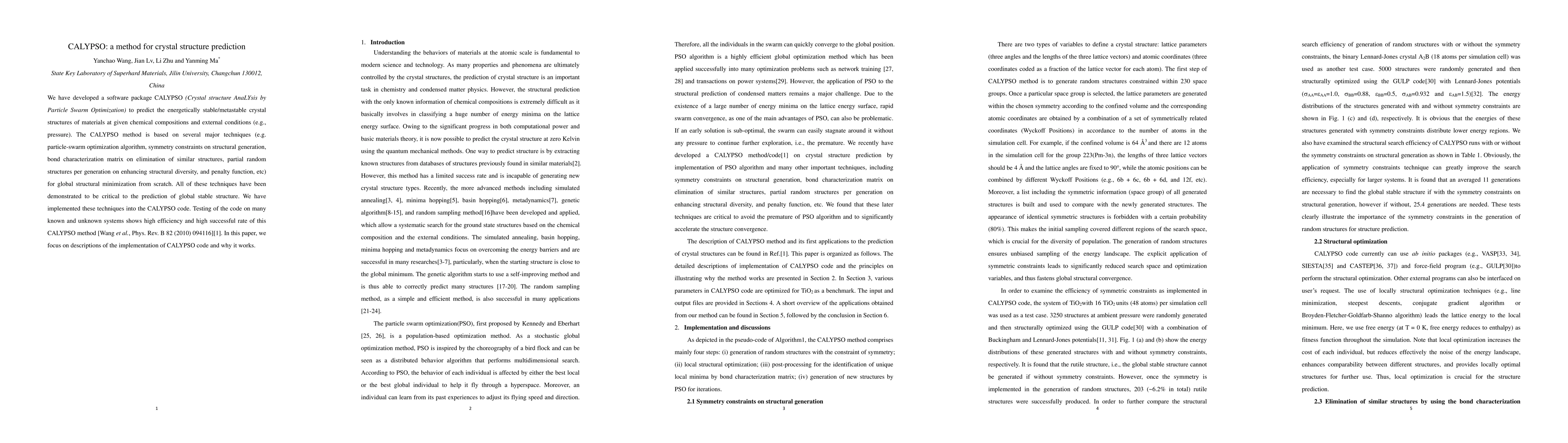 The development of CALYPSO, a novel computational method that integrates multiple optimization techniques to efficiently predict crystal structures of materials.