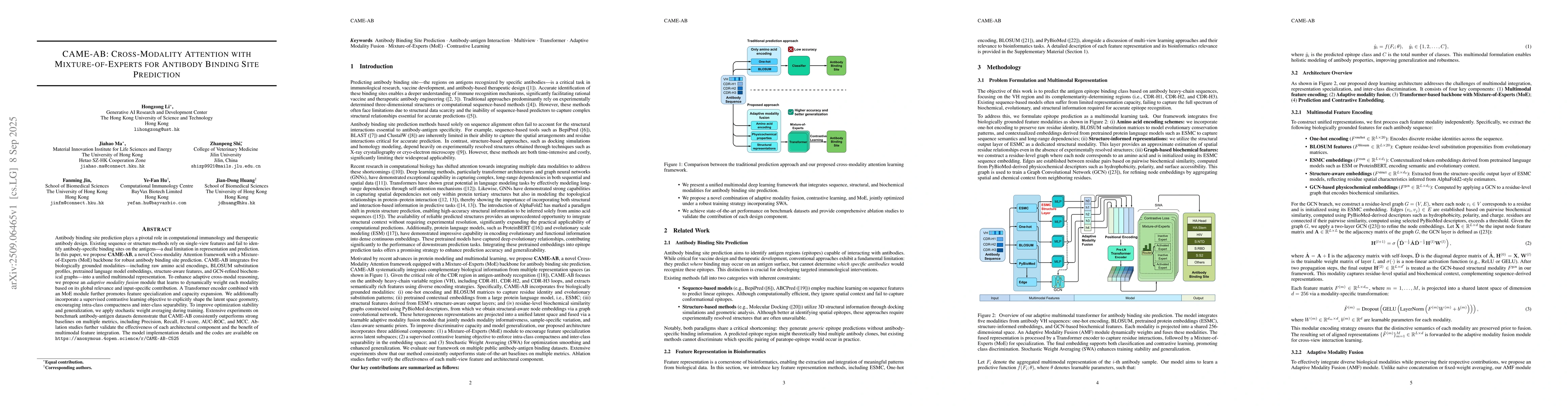 Antibody binding site prediction plays a pivotal role in computational immunology and therapeutic antibody design. Existing sequence or structure methods rely on single-view features and fail to identify antibody-specific binding sites on the antigens-a dual limitation in representation and prediction. In this paper, we propose CAME-AB, a novel Cross-modality Attention framework with a Mixture-of-Experts (MoE) backbone for robust antibody binding site prediction. CAME-AB integrates five biologically grounded modalities, including raw amino acid encodings, BLOSUM substitution profiles, pretrained language model embeddings, structure-aware features, and GCN-refined biochemical graphs-into a unified multimodal representation. To enhance adaptive cross-modal reasoning, we propose an adaptive modality fusion module that learns to dynamically weight each modality based on its global relevance and input-specific contribution. A Transformer encoder combined with an MoE module further promotes feature specialization and capacity expansion. We additionally incorporate a supervised contrastive learning objective to explicitly shape the latent space geometry, encouraging intra-class compactness and inter-class separability. To improve optimization stability and generalization, we apply stochastic weight averaging during training. Extensive experiments on benchmark antibody-antigen datasets demonstrate that CAME-AB consistently outperforms strong baselines on multiple metrics, including Precision, Recall, F1-score, AUC-ROC, and MCC. Ablation studies further validate the effectiveness of each architectural component and the benefit of multimodal feature integration. The model implementation details and the codes are available on https://anonymous.4open.science/r/CAME-AB-C525