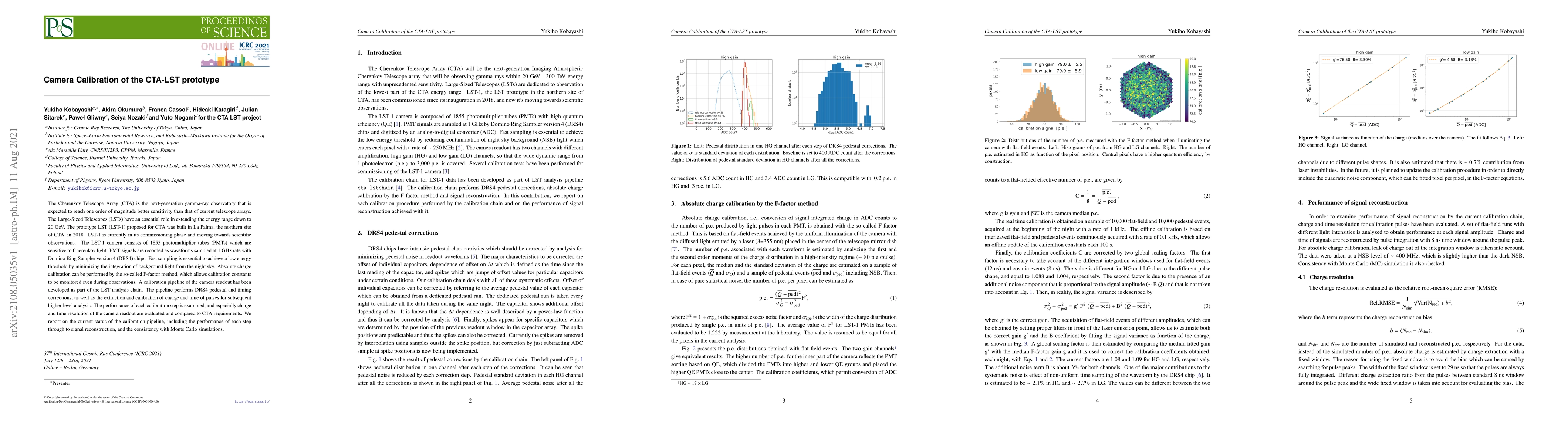 This paper details the calibration process for the prototype Large-Sized Telescope (LST-1) of the Cherenkov Telescope Array (CTA), focusing on the camera readout using photomultiplier tubes and Domino Ring Sampler chips. The calibration pipeline includes pedestal and timing corrections, and evaluates charge and time resolution against CTA requirements, with results consistent with Monte Carlo simulations.