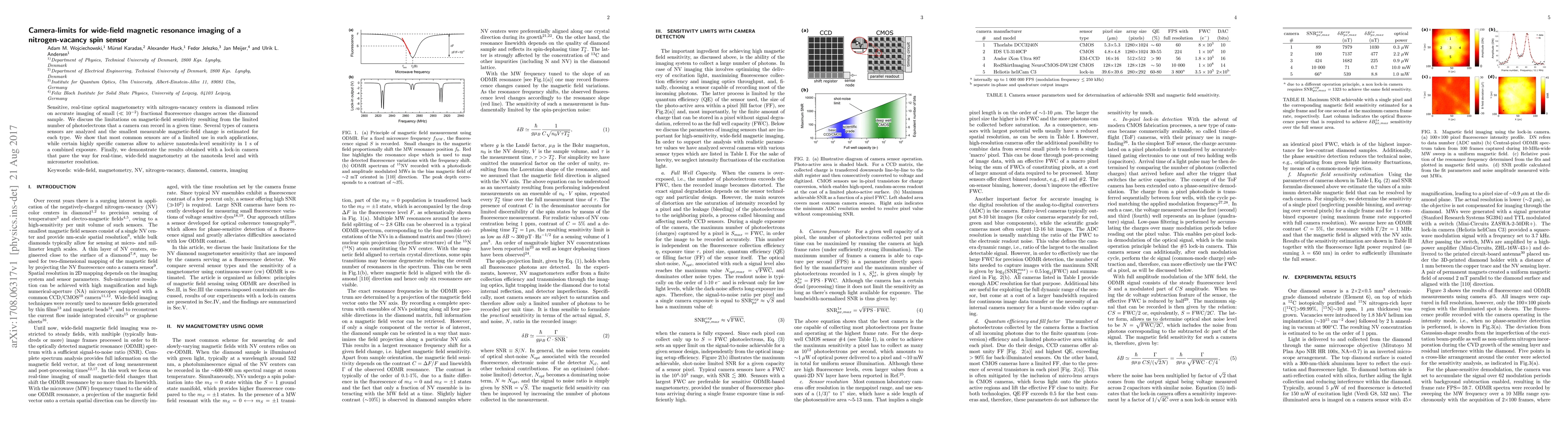 This paper investigates the limitations of camera sensors in capturing the small fluorescence changes necessary for real-time optical magnetometry using nitrogen-vacancy centers in diamond. It finds that most common cameras are insufficient, but specialized cameras, particularly lock-in cameras, can achieve nanotesla-level sensitivity and micrometer resolution.