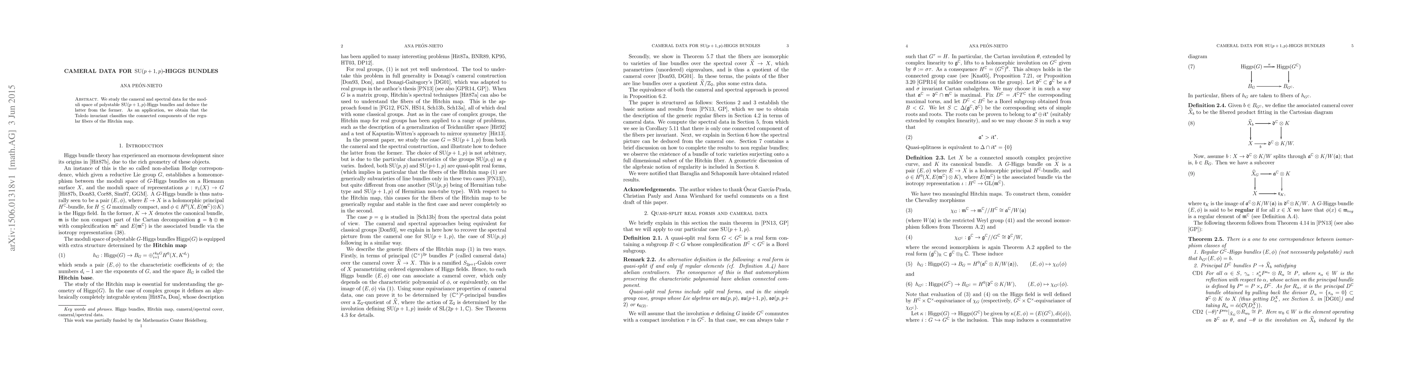 We study the cameral and spectral data for the moduli space of polystable $\mathrm{SU}(p+1,p)$-Higgs bundles and deduce the latter from the former. As an application, we obtain that the Toledo invariant classifies the connected components of the regular fibers of the Hitchin map.