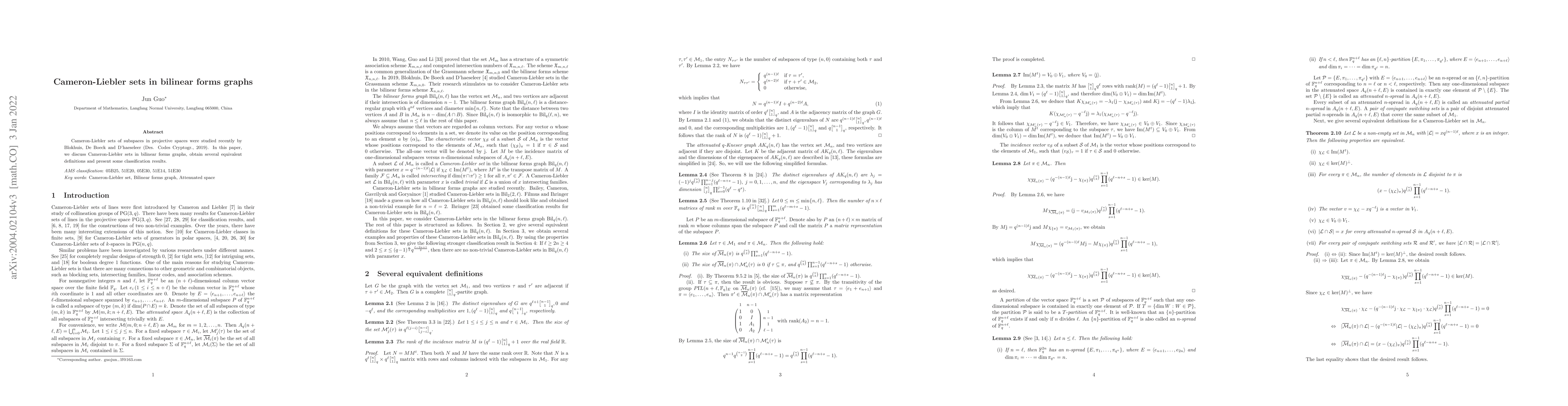 This paper explores Cameron-Liebler sets within the context of bilinear forms graphs, providing multiple equivalent definitions and presenting classifications of these sets. The research builds on previous work by Blokhuis, De Boeck, and D'haeseleer on subspaces in projective spaces.