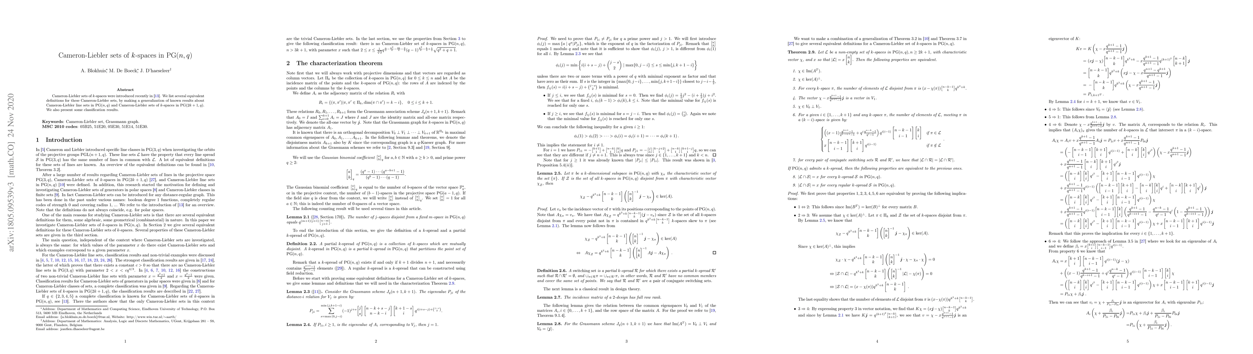 The paper generalizes known results about Cameron-Liebler line sets and sets of k-spaces in PG(2k+1, q) to k-spaces in PG(n, q) for arbitrary n, providing equivalent definitions and a classification result.