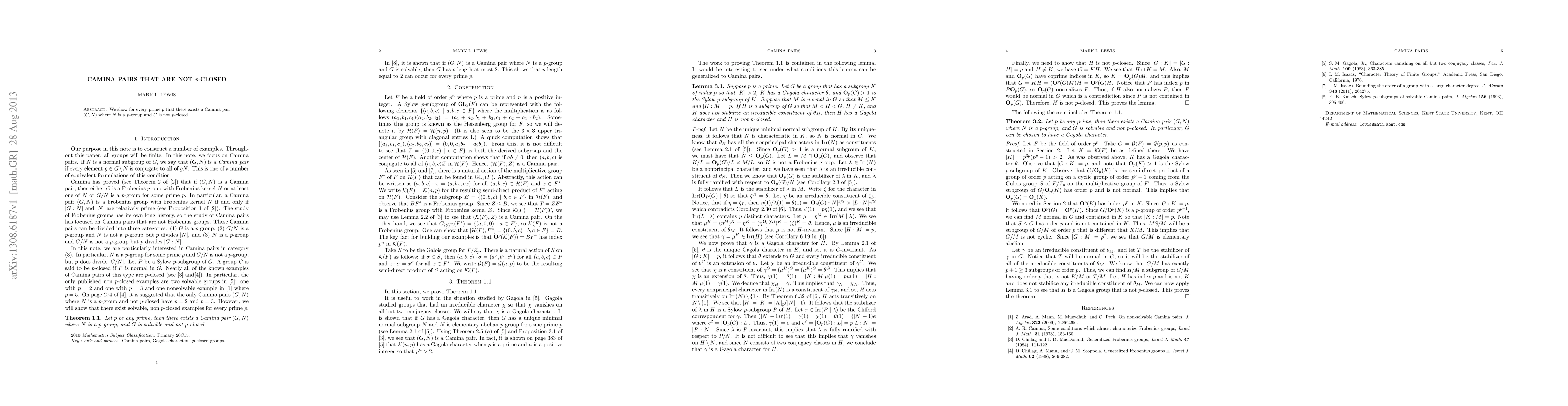 We show for every prime $p$ that there exists a Camina pair $(G,N)$ where $N$ is a $p$-group and $G$ is not $p$-closed.