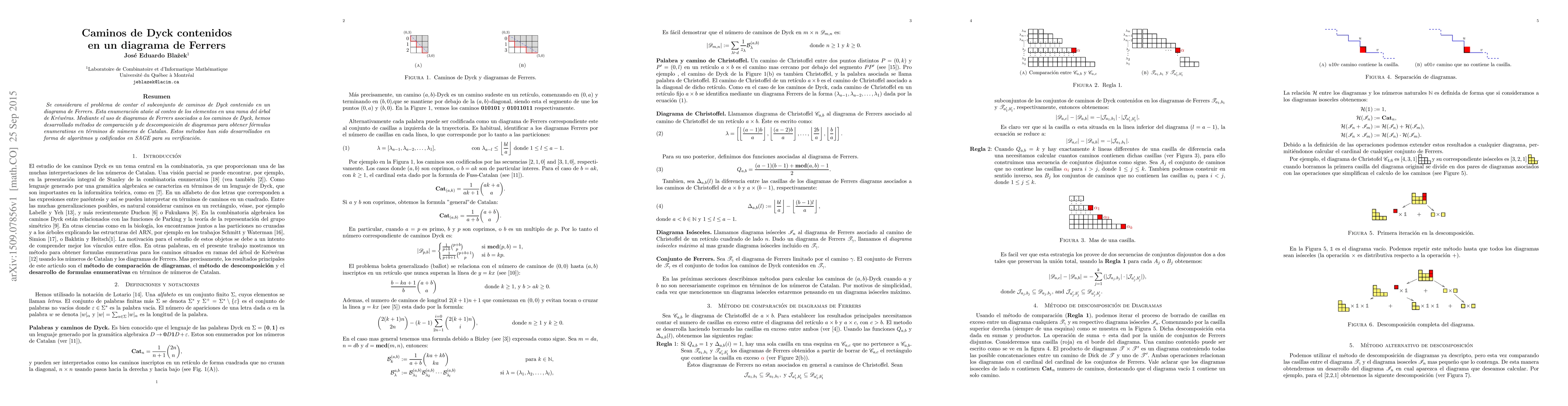 We consider the problem of counting subset of Dyck paths contained in a Ferrers diagram. This enumeration concerns to find the number of the elements in a branch of the Kr\'ew\'eras tree. Using the Ferrers diagrams associated with Dyck paths, we have developed methods of comparison and decomposition diagrams to obtain enumerative formulas in terms of Catalan numbers. These methods have been developed in the form of algorithms and SAGE coded for verification. ----- Se considerara el problema de contar el subconjunto de caminos de Dyck contenido en un diagrama de Ferrers. Esta enumeraci\'on ata\~ne al conteo de los elementos en una rama del \'arbol de Kr\'ew\'eras. Mediante el uso de diagramas de Ferrers asociados a los caminos de Dyck, hemos desarrollado m\'etodos de comparaci\'on y de descomposici\'on de diagramas para obtener f\'ormulas enumerativas en t\'erminos de n\'umeros de Catalan. Estos m\'etodos han sido desarrollados en forma de algoritmos y codificados en SAGE para su verificaci\'on.