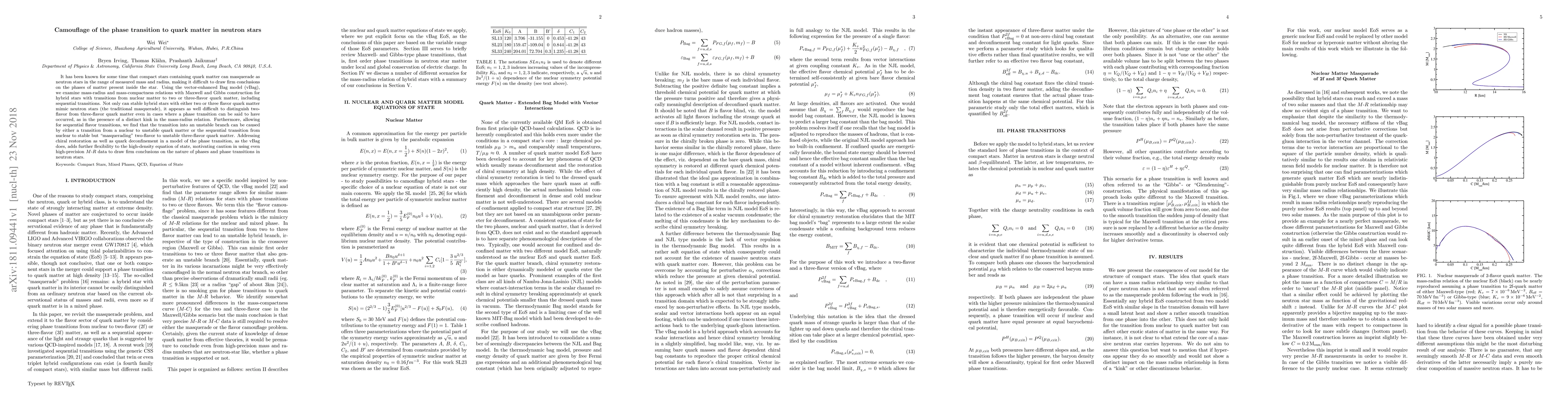 It has been known for some time that compact stars containing quark matter can masquerade as neutron stars in the range of measured mass and radius, making it difficult to draw firm conclusions on the phases of matter present inside the star. Using the vector-enhanced Bag model (vBag), we examine mass-radius and mass-compactness relations with Maxwell and Gibbs construction for hybrid stars with transitions from nuclear matter to two or three-flavor quark matter, including sequential transitions. Not only can stable hybrid stars with either two or three-flavor quark matter mimic neutron stars (the traditional masquerade), it appears as well difficult to distinguish two-flavor from three-flavor quark matter even in cases where a phase transition can be said to have occurred, as in the presence of a distinct kink in the mass-radius relation. Furthermore, allowing for sequential flavor transitions, we find that the transition into an unstable branch can be caused by either a transition from a nuclear to unstable quark matter or the sequential transition from nuclear to stable but "masquerading" two-flavor to unstable three-flavor quark matter. Addressing chiral restoration as well as quark deconfinement in a model of the phase transition, as the vBag does, adds further flexibility to the high-density equation of state, motivating caution in using even high-precision $M$-$R$ data to draw firm conclusions on the nature of phases and phase transitions in neutron stars.