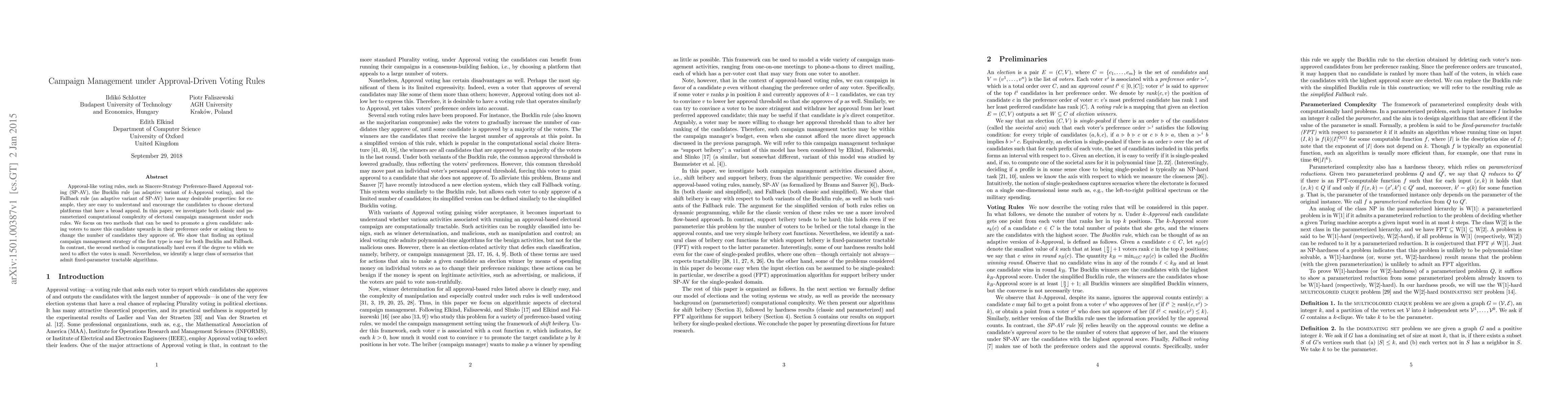 This paper examines the computational complexity of campaign management under approval-driven voting rules like SP-AV and Bucklin. It finds that promoting a candidate by adjusting preference order is easy, while changing the number of approved candidates is computationally hard, though fixed-parameter tractable algorithms exist for many scenarios.
