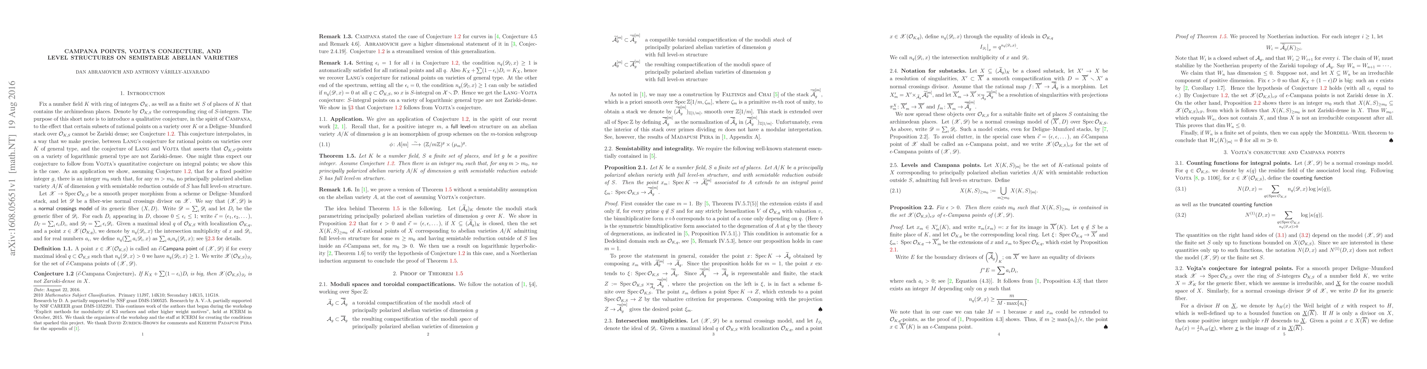 This paper proposes a new conjecture by Campana, which asserts that certain subsets of rational points on varieties cannot be Zariski dense, and shows it follows from Vojta's conjecture. It also proves that under this conjecture, no principally polarized abelian variety with semistable reduction can have full level-m structure for sufficiently large m.