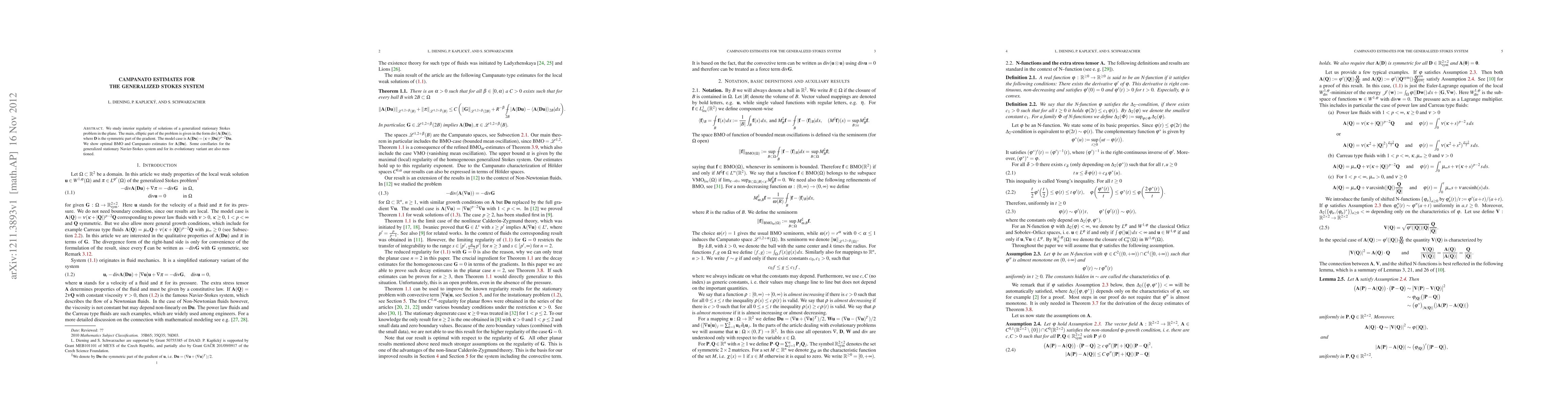 This paper investigates the interior regularity of solutions to a generalized stationary Stokes problem in the plane, proving optimal BMO and Campanato estimates for the elliptic part given by div(A(Du)), where A(Du) is a function of the gradient's symmetric part. The results also extend to implications for the generalized stationary and evolutionary Navier-Stokes systems.