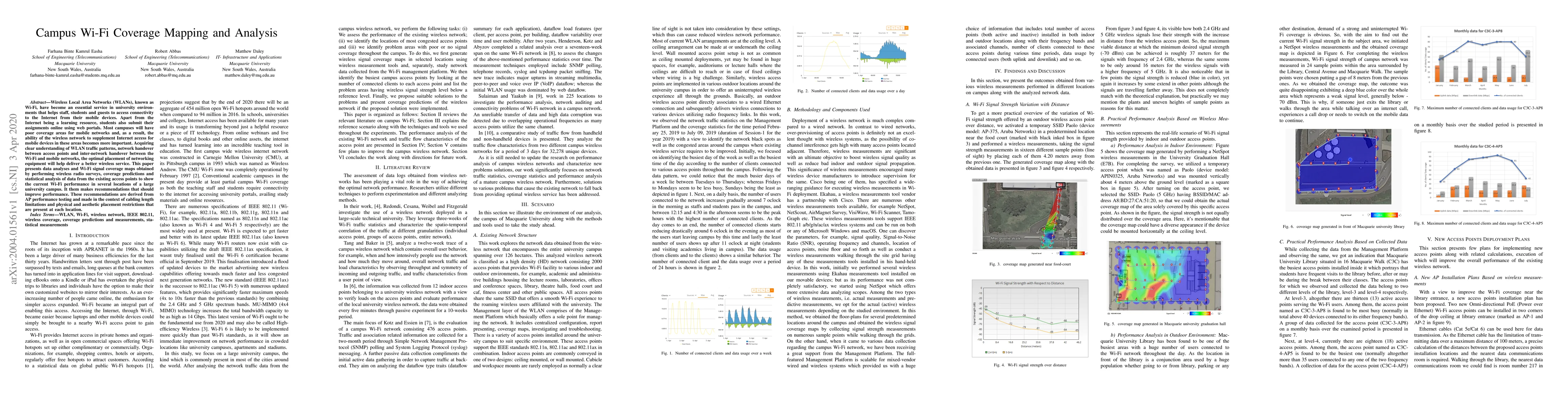 The paper presents a comprehensive analysis of Wi-Fi signal strength and network performance using real-life measurements and data analysis, offering practical recommendations for improving campus wireless networks.