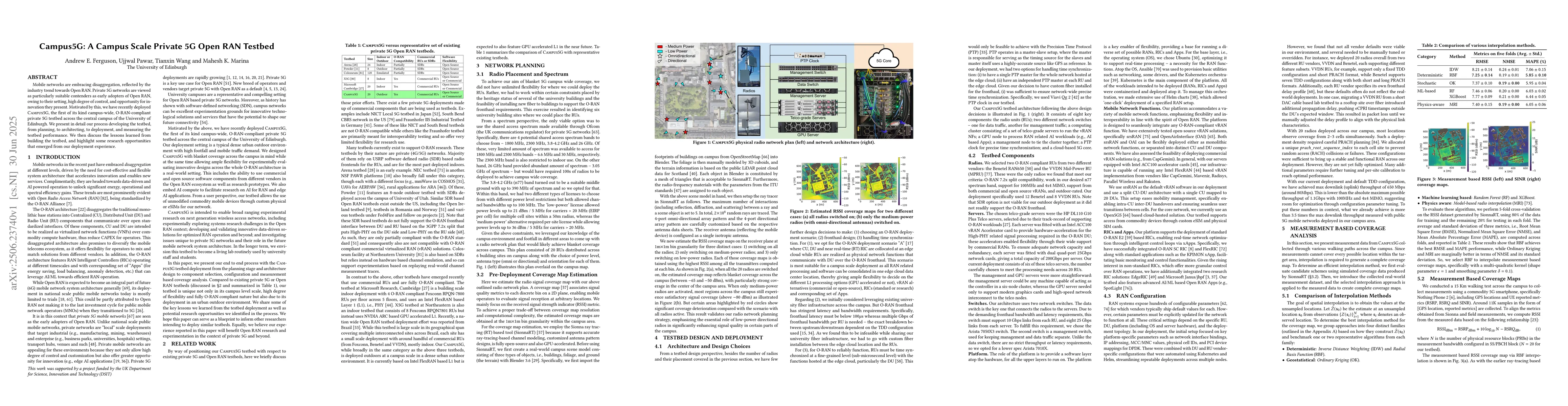 The research details the deployment and measurement of Campus5G, the first O-RAN compliant private 5G testbed across a university campus, involving detailed planning, architecting, and performance measurement.