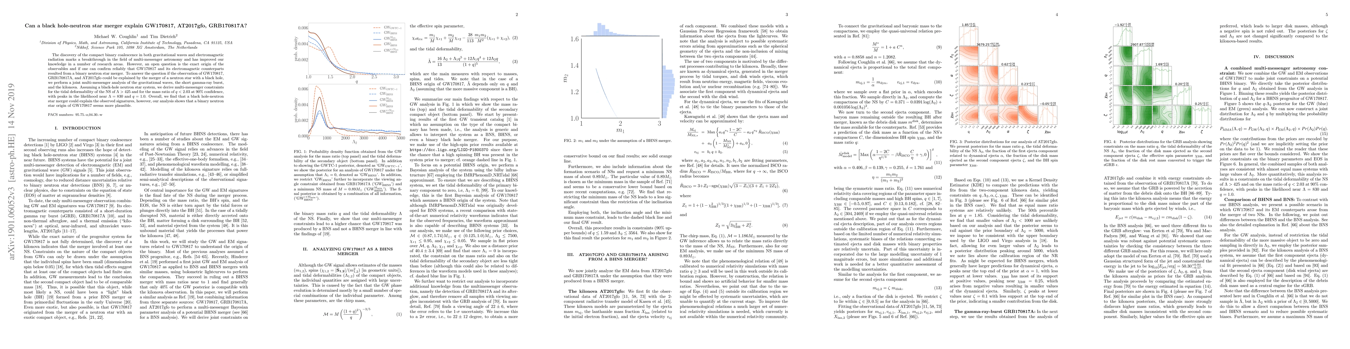 The study investigates whether a black hole-neutron star merger could explain the multi-messenger signals GW170817, GRB170817A, and AT2017gfo, finding that while a black hole-neutron star merger is possible, a binary neutron star merger is more plausible.