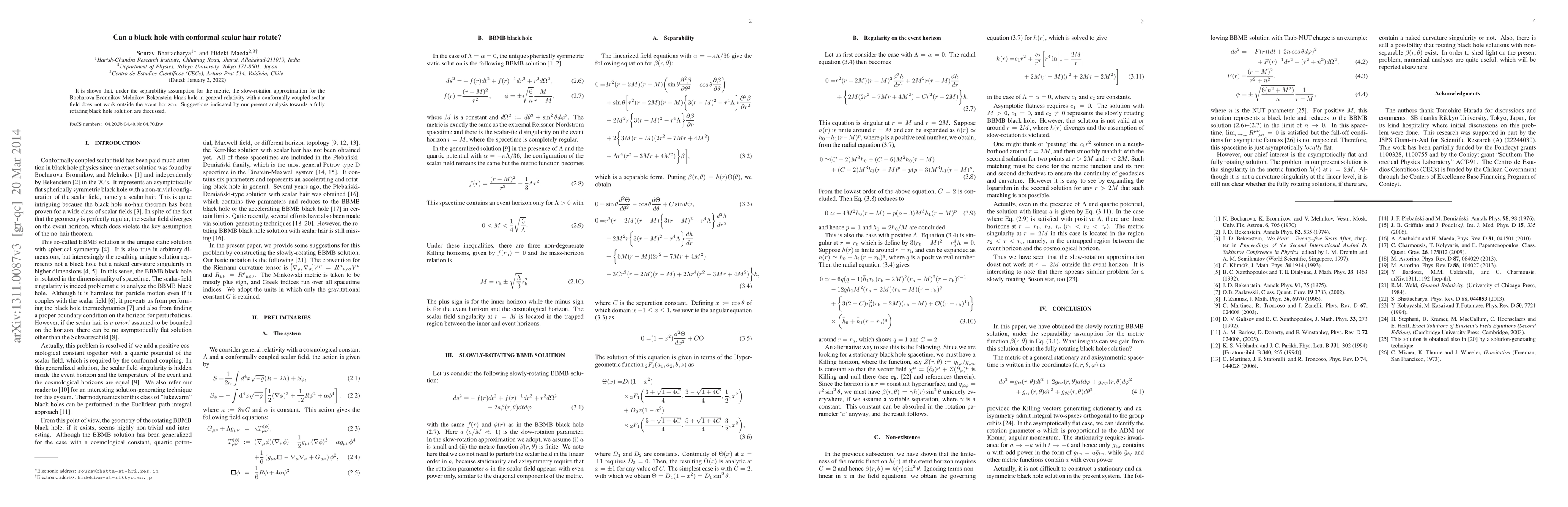 It is shown that, under the separability assumption for the metric, the slow-rotation approximation for the Bocharova-Bronnikov-Melnikov-Bekenstein black hole in general relativity with a conformally coupled scalar field does not work outside the event horizon. Suggestions indicated by our present analysis towards a fully rotating black hole solution are discussed.