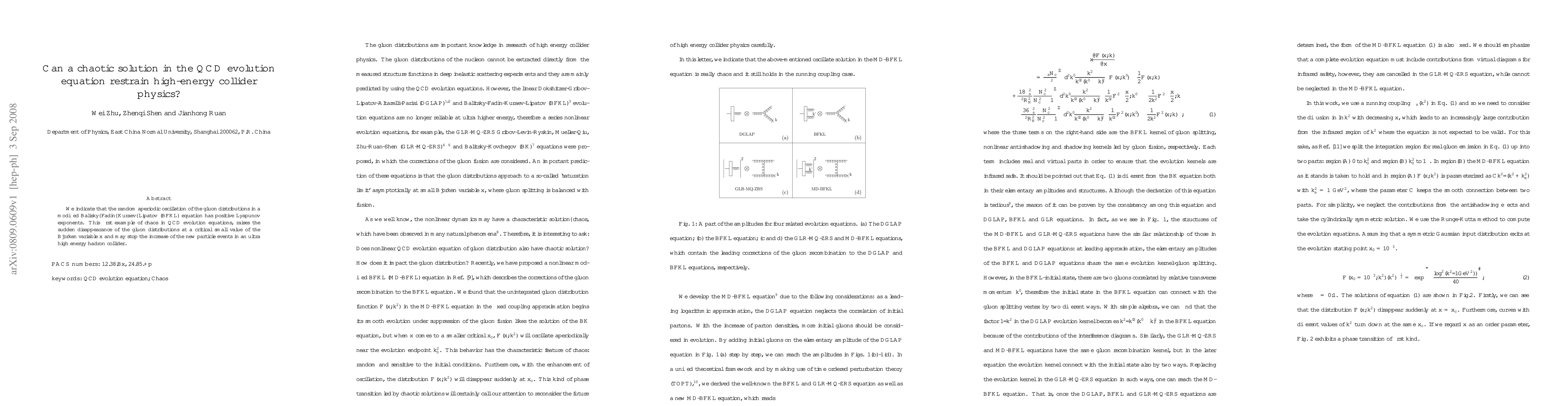 We indicate that the random aperiodic oscillation of the gluon distributions in a modified Balisky--Fadin--Kuraev--Lipatov (BFKL) equation has positive Lyapunov exponents. This first example of chaos in QCD evolution equations, raises the sudden disappearance of the gluon distributions at a critical small value of the Bjorken variable $x$ and may stop the increase of the new particle events in an ultra high energy hadron collider.