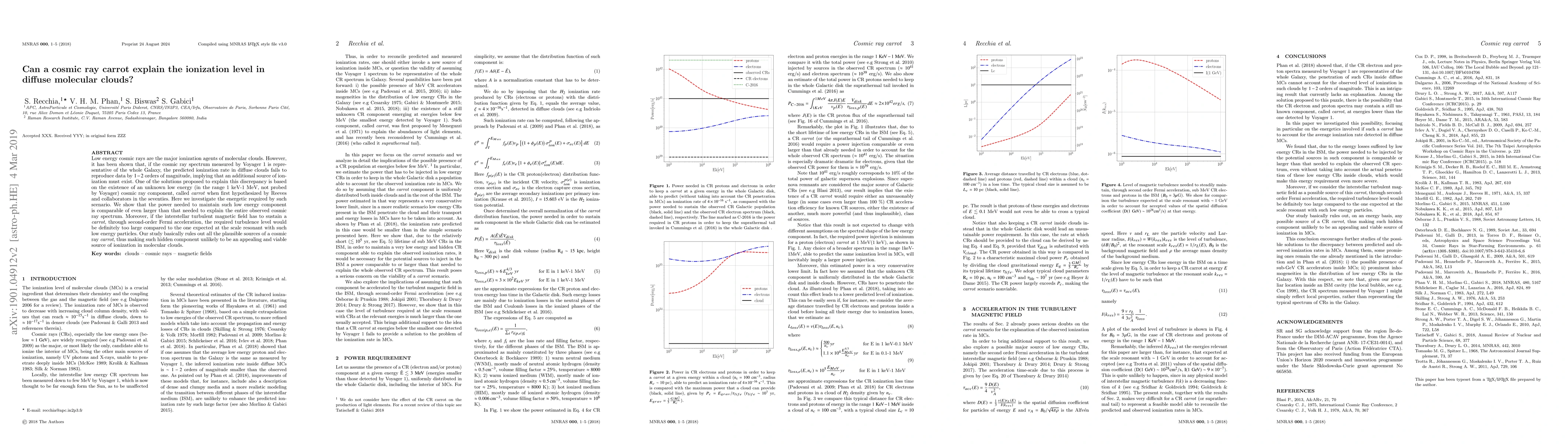 This paper investigates the possibility of an unknown low-energy cosmic ray component, termed "carrot," to explain the ionization discrepancy in diffuse molecular clouds. The study concludes that the energetic requirements and interstellar turbulence levels needed to sustain such a component make it an unlikely source of ionization.