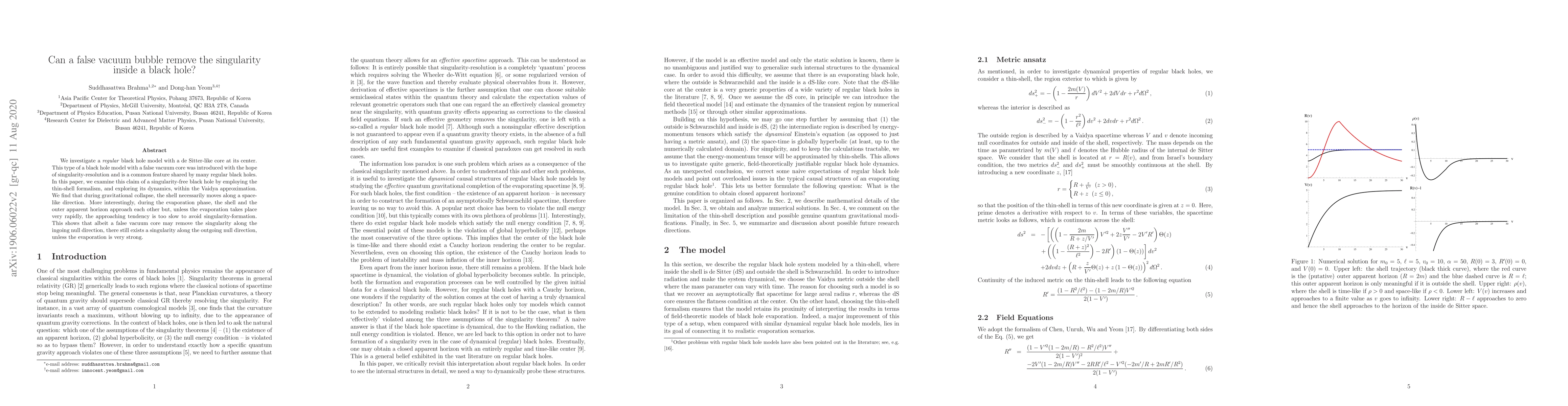 A new study examines the possibility of a false vacuum bubble removing the singularity at the center of a black hole, concluding that rapid evaporation is necessary to prevent singularity formation along the outgoing null direction.