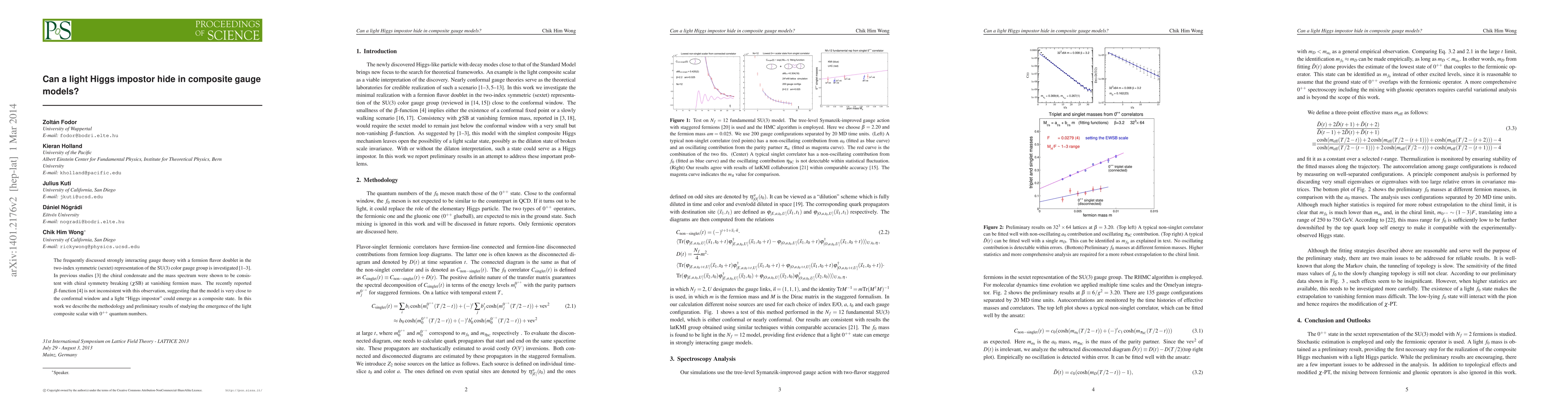 This paper investigates a strongly interacting gauge theory with fermions in the sextet representation, exploring the possibility of a light "Higgs impostor" emerging as a composite state near the conformal window. Preliminary results suggest the potential emergence of a light composite scalar with $0^{++}$ quantum numbers.