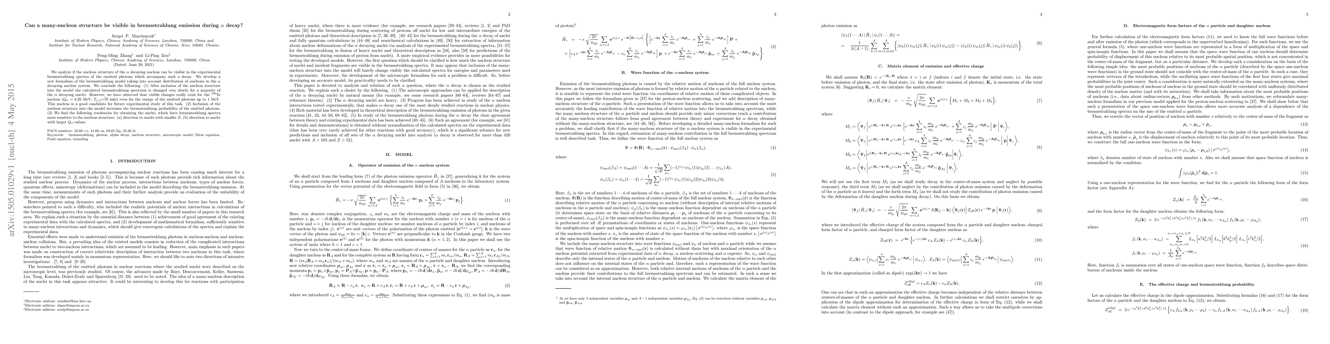 We analyze if the nucleon structure of the $\alpha$ decaying nucleus can be visible in the experimental bremsstrahlung spectra of the emitted photons which accompany such a decay. We develop a new formalism of the bremsstrahlung model taking into account distribution of nucleons in the $\alpha$ decaying nuclear system. We conclude the following: (1) After inclusion of the nucleon structure into the model the calculated bremsstrahlung spectrum is changed very slowly for a majority of the $\alpha$ decaying nuclei. However, we have observed that visible changes really exist for the $^{106}{\rm Te}$ nucleus ($Q_{\alpha}=4.29$ MeV, $T_{1/2}$=70 mks) even for the energy of the emitted photons up to 1 MeV. This nucleus is a good candidate for future experimental study of this task. (2) Inclusion of the nucleon structure into the model increases the bremsstrahlung probability of the emitted photons. (3) We find the following tendencies for obtaining the nuclei, which have bremsstrahlung spectra more sensitive to the nucleon structure: (a) direction to nuclei with smaller $Z$, (b) direction to nuclei with larger $Q_{\alpha}$-values.