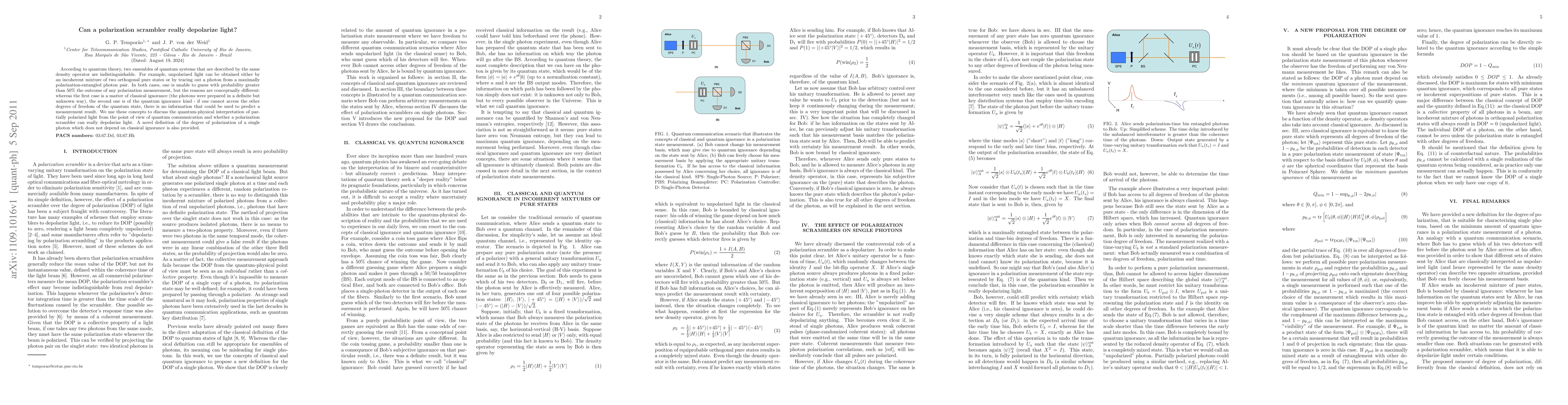 According to quantum theory, two ensembles of quantum systems that are described by the same density operator are indistinguishable. For example, unpolarized light can be obtained either by an incoherent mixture of two orthogonal pure states or by tracing out a photon from a maximally polarization-entangled photon pair. In both cases, one is unable to guess with probability greater than 50% the outcome of any polarization measurement, but the reasons are conceptually different: whereas the first case is a matter of classical ignorance (the photons were prepared in a definite but unknown way), the second one is of the quantum ignorance kind - if one cannot access the other degrees of freedom of the quantum state, there is no information that could be used to predict a measurement result. We use these concepts to discuss the quantum-physical interpretation of partially polarized light from the point of view of quantum communication and whether a polarization scrambler can really depolarize light. A novel definition of the degree of polarization of a single photon which does not depend on classical ignorance is also provided.