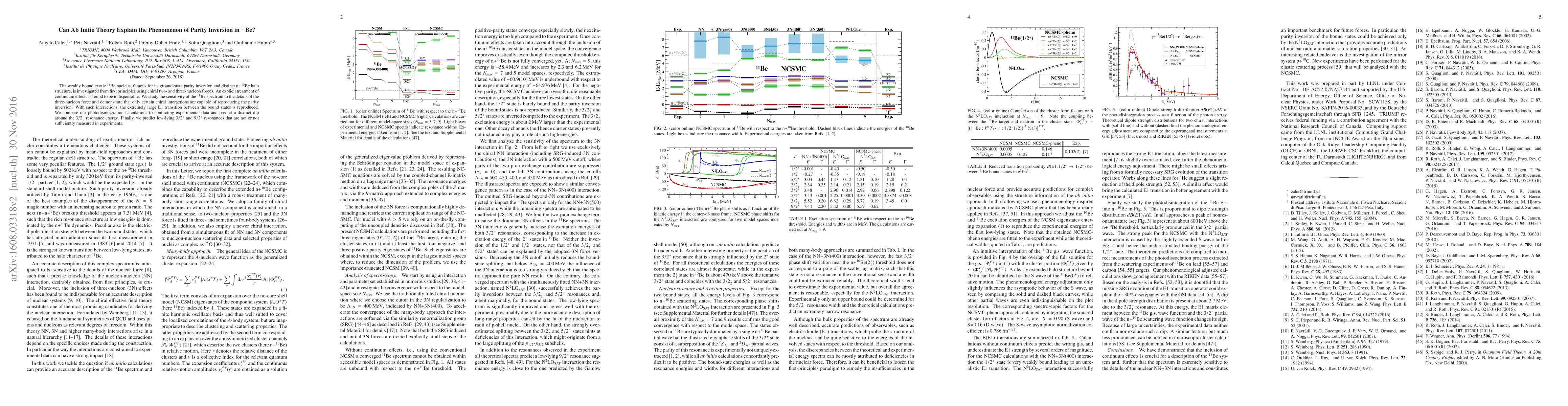 The research uses ab initio theory with chiral two- and three-nucleon forces to investigate the exotic ${}^{11}$Be nucleus, known for its ground-state parity inversion. It finds that specific chiral interactions can reproduce the parity inversion and large E1 transition, while predicting a distinct dip in resonance energy and previously unobserved low-lying resonances.