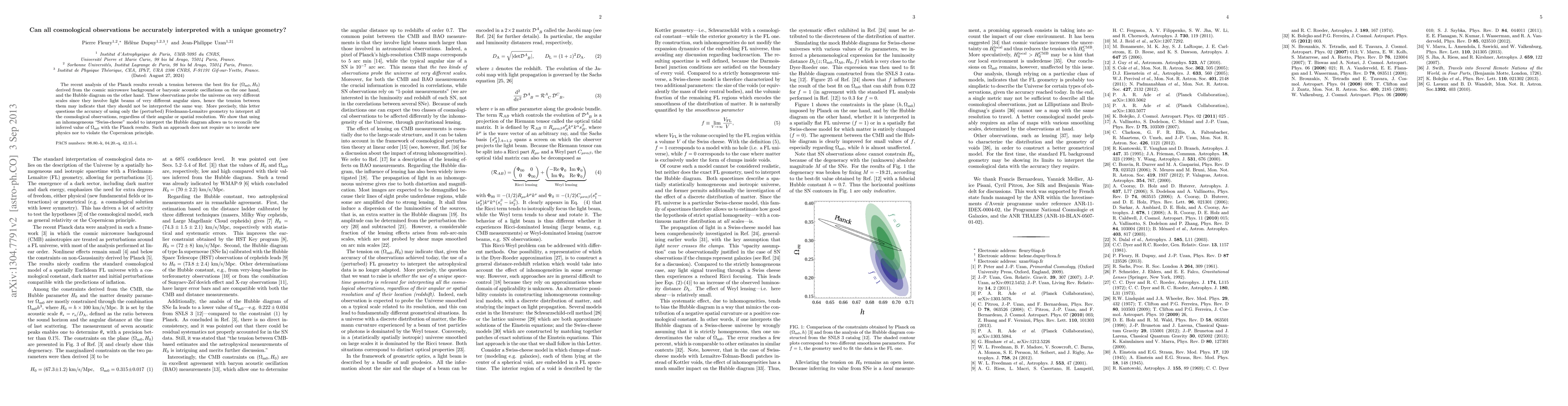 The recent analysis of the Planck results reveals a tension between the best fits for ({\Omega}m0, H0) derived from the cosmic microwave background or baryonic acoustic oscillations on the one hand, and the Hubble diagram on the other hand. These observations probe the universe on very different scales since they involve light beams of very different angular sizes; hence the tension between them may indicate that they should not be interpreted the same way. More precisely, this Letter questions the accuracy of using only the (perturbed) Friedmann-Lema\^itre geometry to interpret all the cosmological observations, regardless of their angular or spatial resolution. We show that using an inhomogeneous "Swiss-cheese" model to interpret the Hubble diagram allows to reconcile it with the Planck results. Such an approach does not require us to invoke new physics nor to violate the Copernican principle.